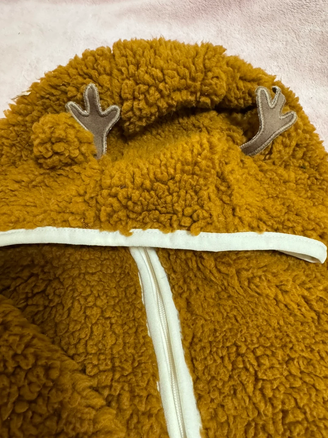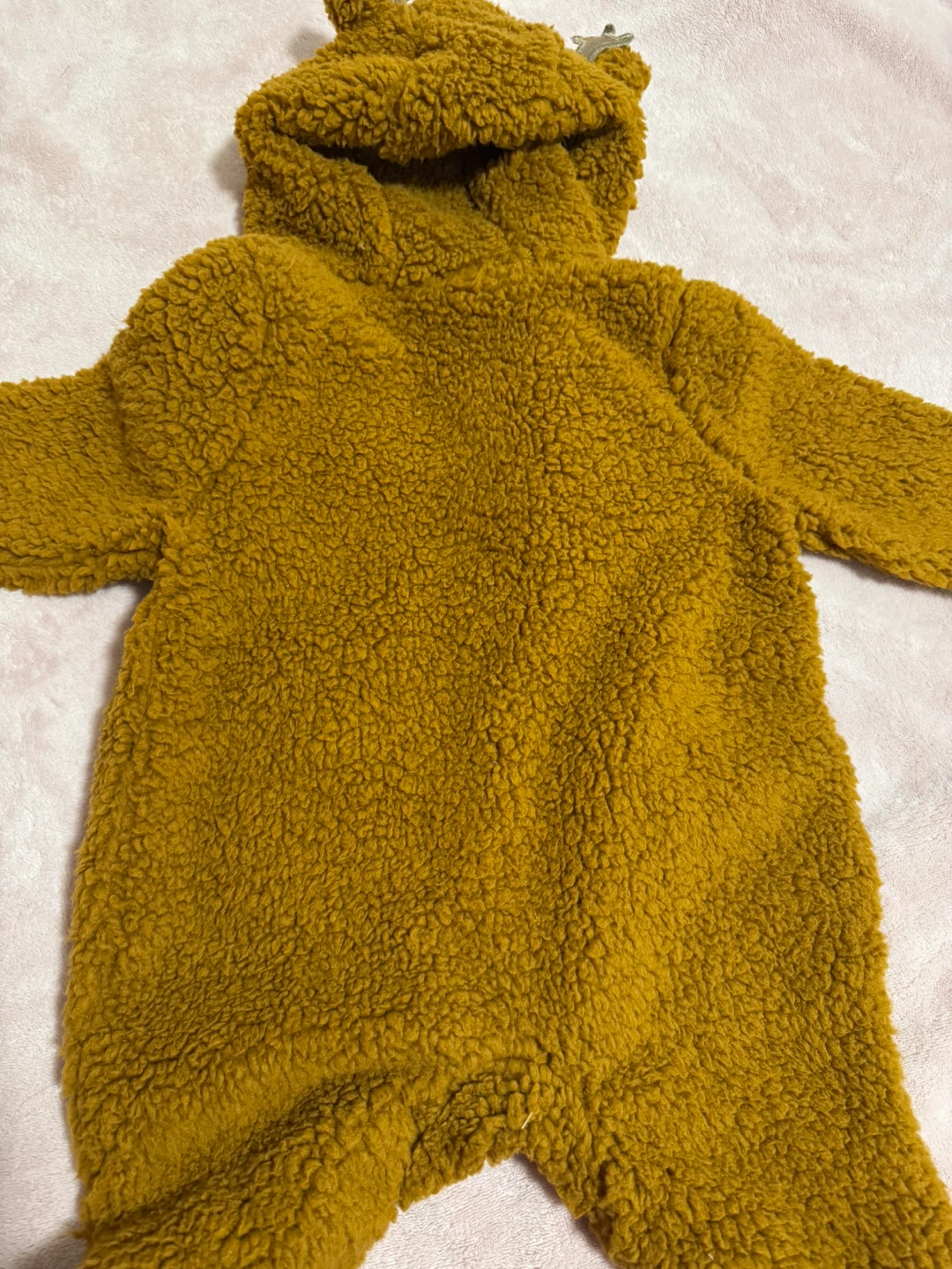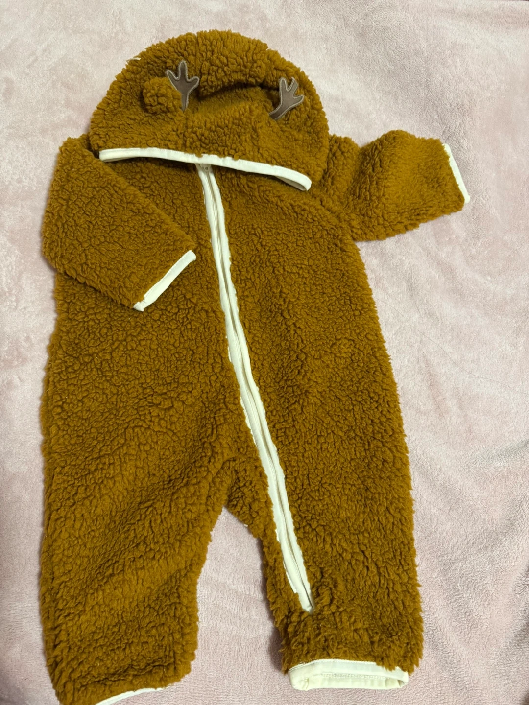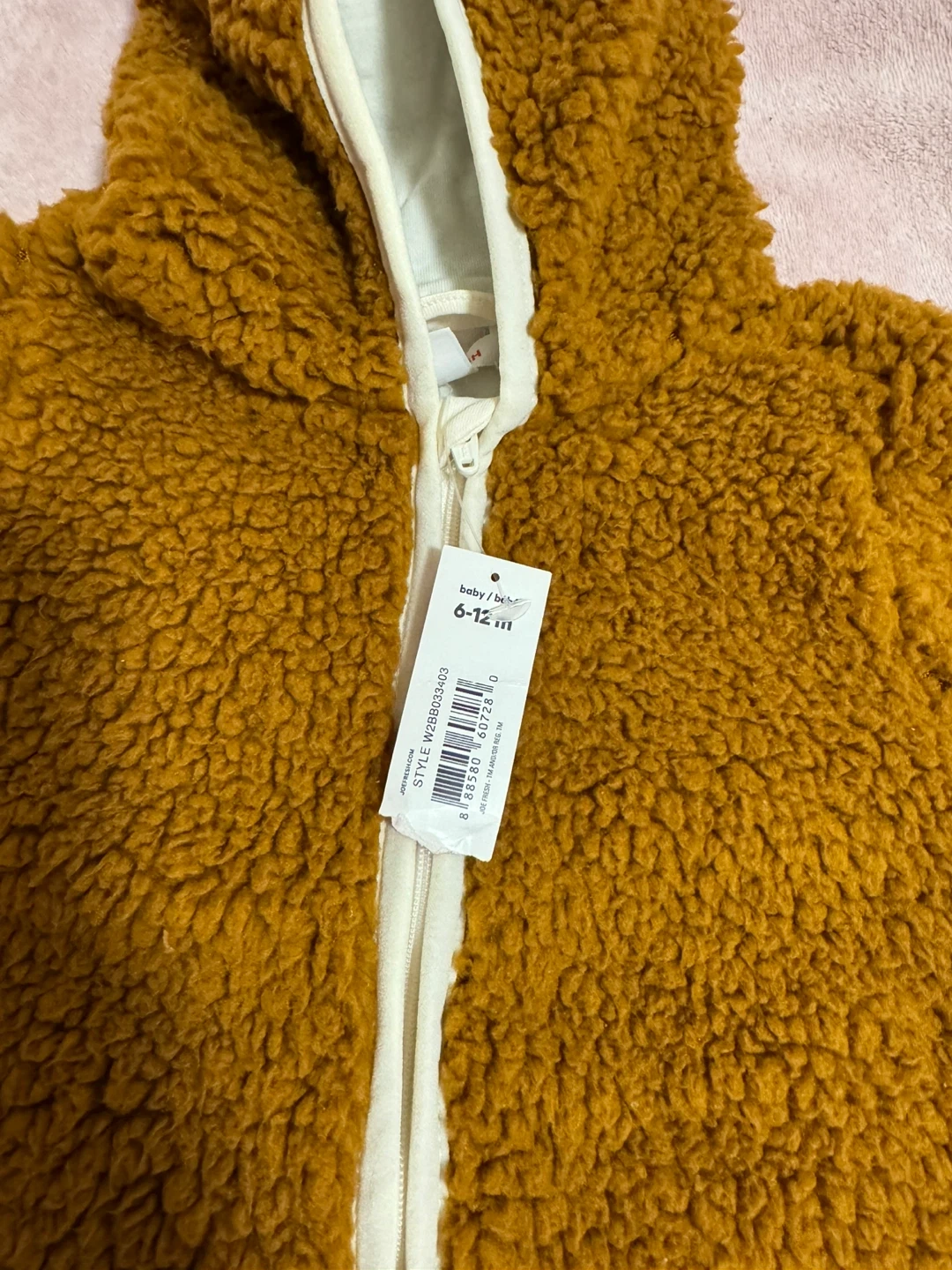 Here's a brand new Joe Fresh baby bunting, perfect for keeping your little one cozy! It's a size 6-12 months and still has the tags on it. The colour is a lovely brown, and it's made of a soft, fuzzy material. Great for autumn and winter!
