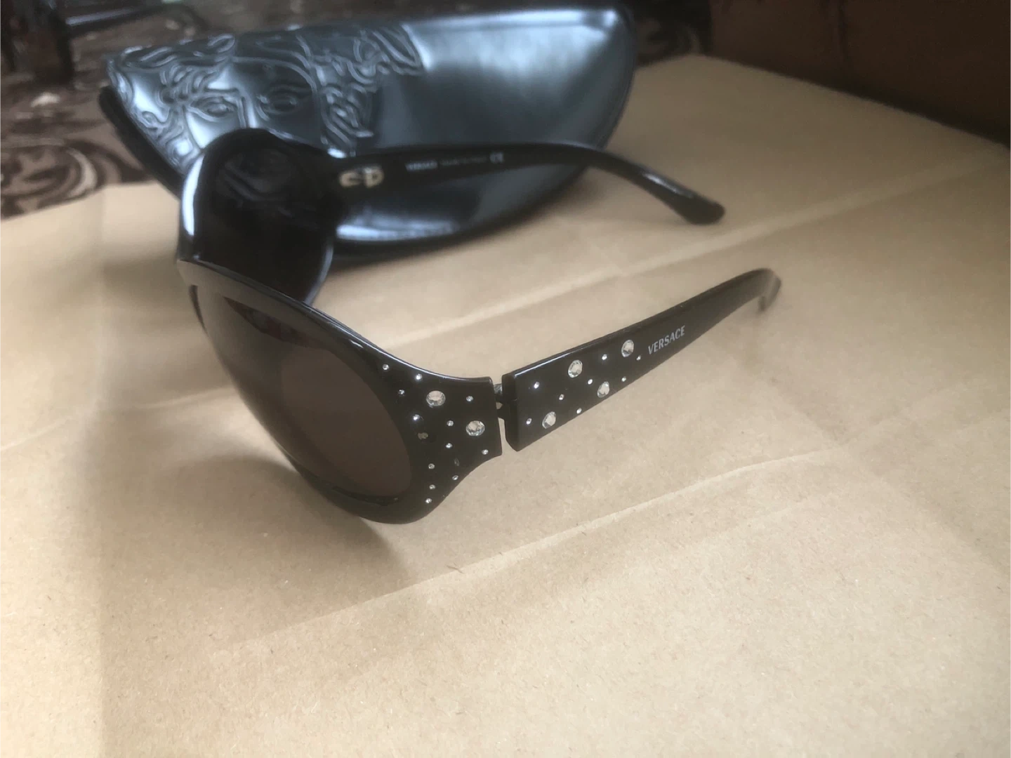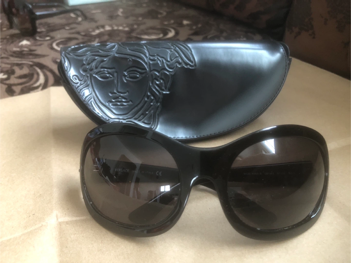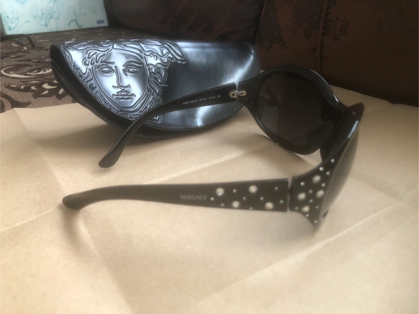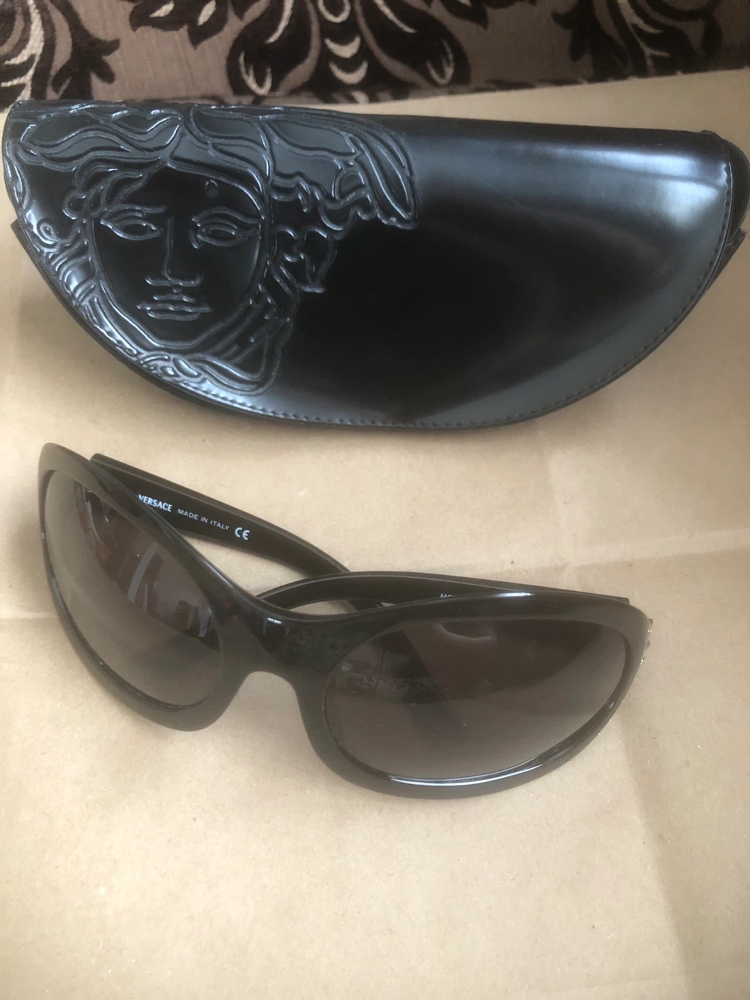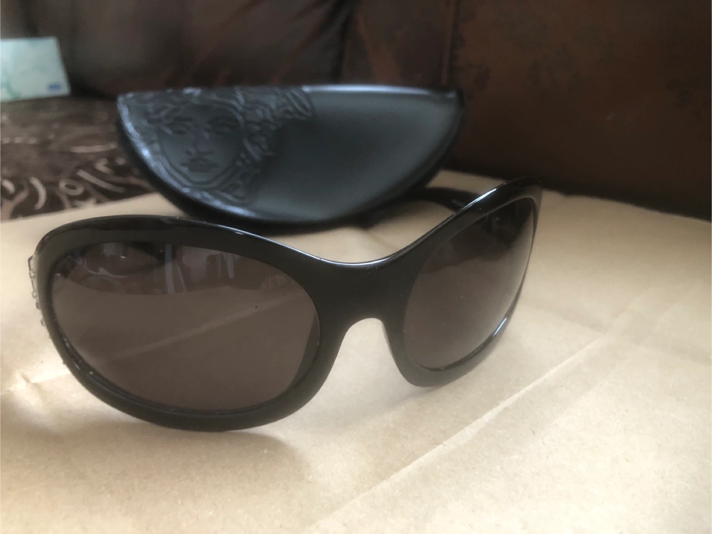 Selling a pair of Versace sunglasses in great condition! They come with the original Versace case, featuring the iconic Medusa head. The sunglasses are black and have a stylish design. Perfect for adding a touch of luxury to your look!