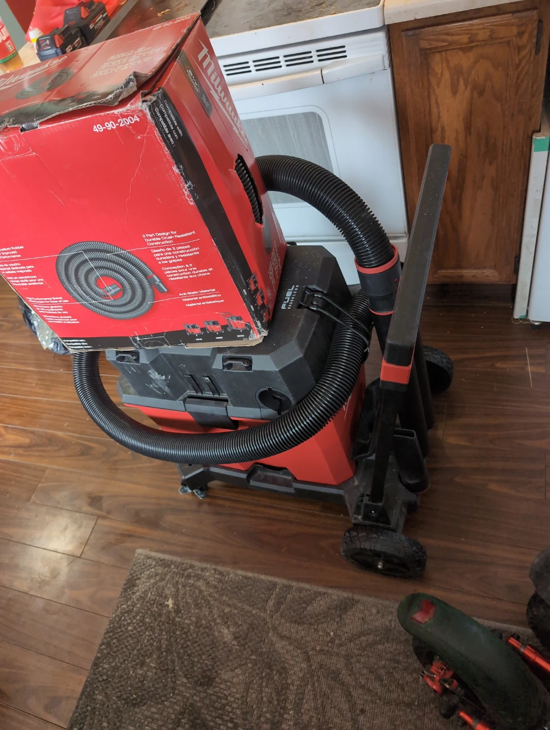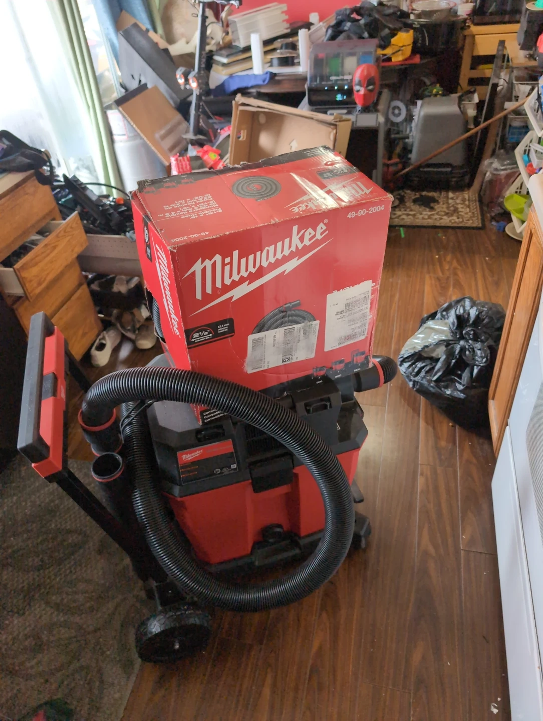 GREAT PRESENT FOR XMAS. Selling a Milwaukee M18 FUEL 12 Gallon Dual-Battery Wet/Dry Vacuum! It brings unmatched performance, durability, and versatility to components. It also outperforms 4.25 Peak HP Wet/Dry Vacuums, delivering more cleaning power than corded. The MILWAUKEE Dual-Battery Motor Head requires (2) batteries to operate and cleans up more common jobsite debris like drywall dust, concrete dust, and wood/metal shavings than 4.25 peak HP wet/dry vacs in the same amount of time. This cordless vac provides you with the Most Durable Wheels and Hoses with reinforced casters and tread design for up to 8X wheel life. The crush and twist-resistant hose construction delivers up to 2X hose life. This vac is part of the Most Versatile Wet/Dry Vacuum System with interchangeable motor heads, tanks, and carts for varying performance, holding capacity, and mobility with the easy access foot pedal rarely used in excellent condition willing to negotiate price to an extent. No lowballers please. Comes with an extra 12' of hose new in box.