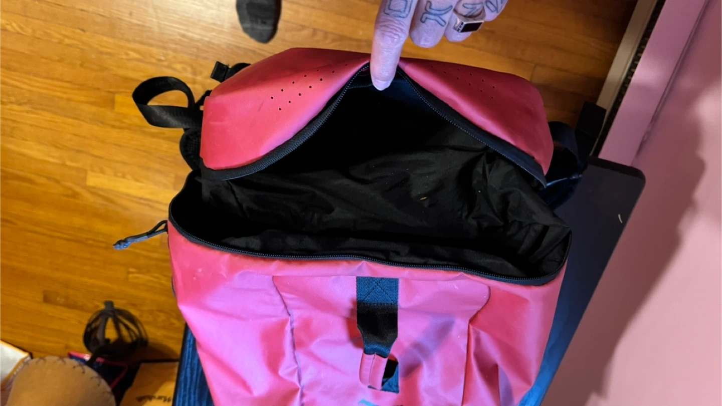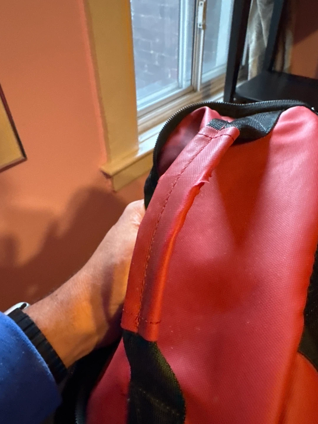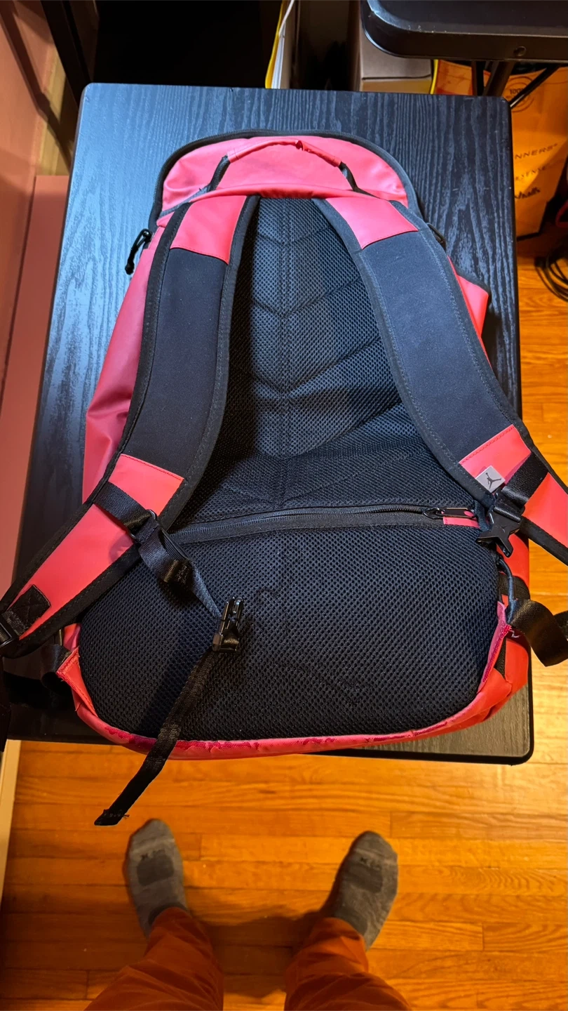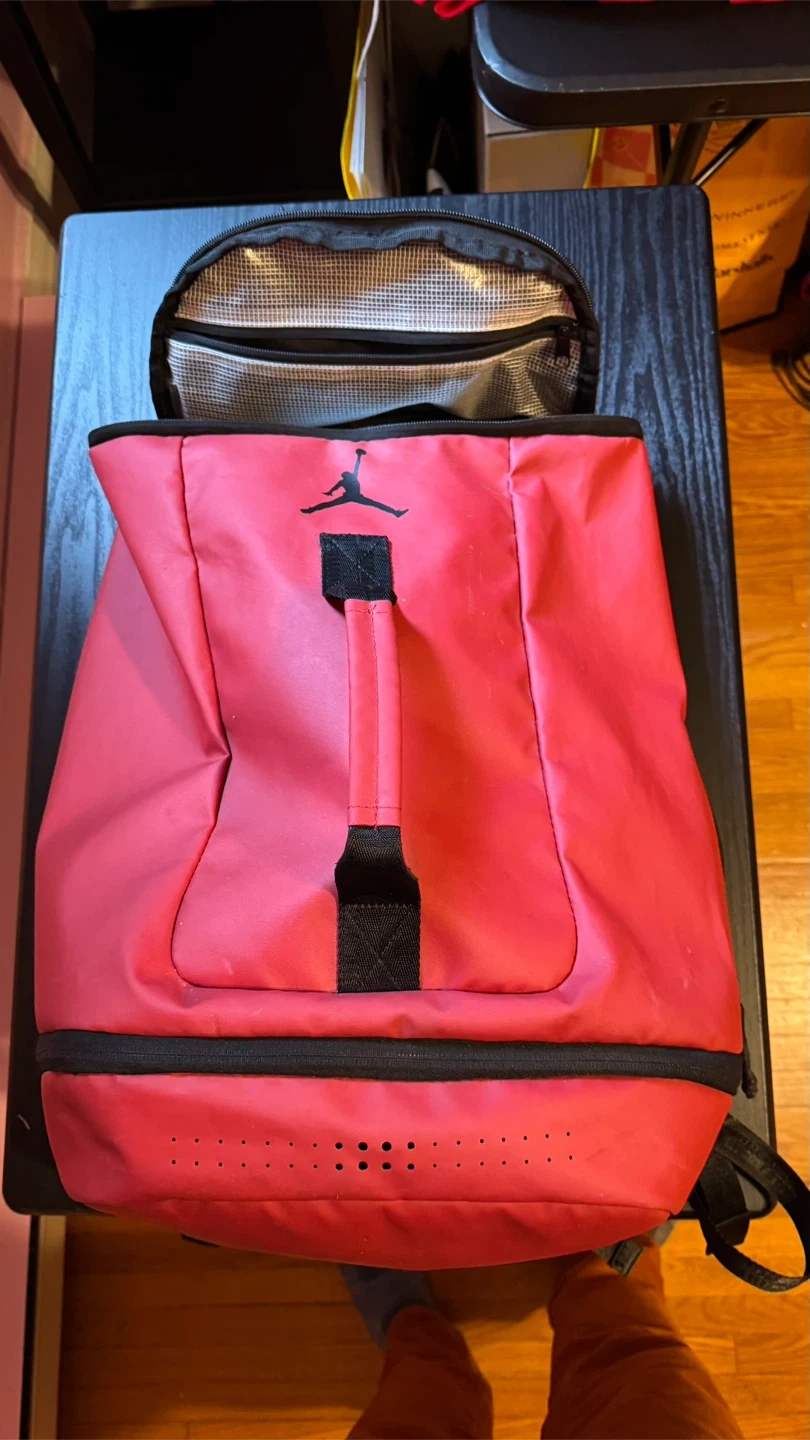 Selling a red rubberized Jordan backpack. It's in good condition and ready for a new adventure! Perfect for school, sports, or just everyday use.