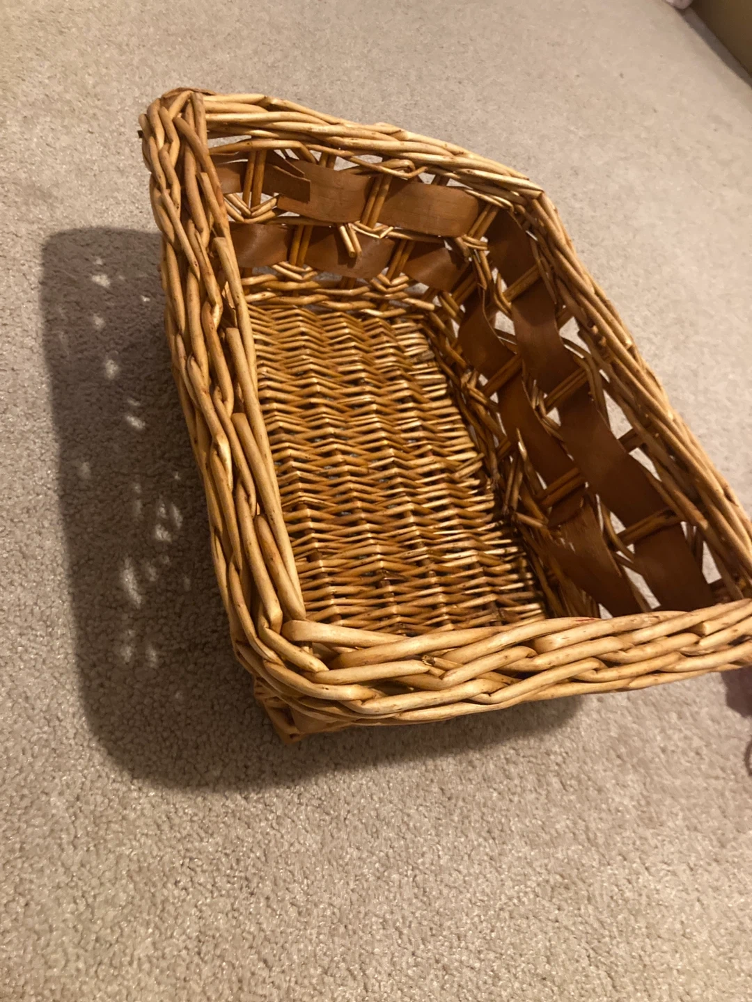 Selling a wicker storage basket. It's in great condition and perfect for organizing your home!