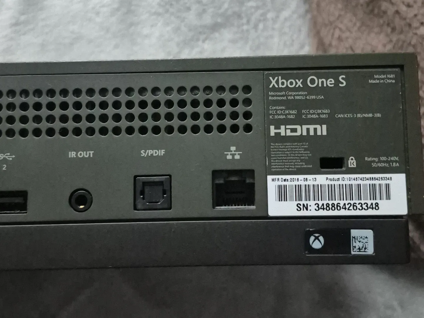 Selling an Xbox One S console, complete with a controller and a couple of games! It's in great shape and ready for a new player. Includes Halo 4 and Call of Duty World at War with 1tb of storage