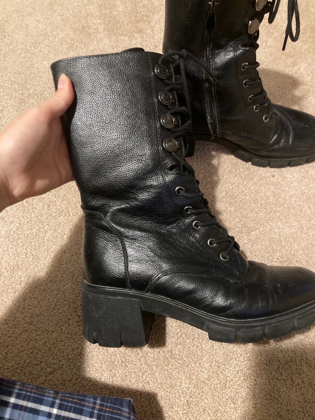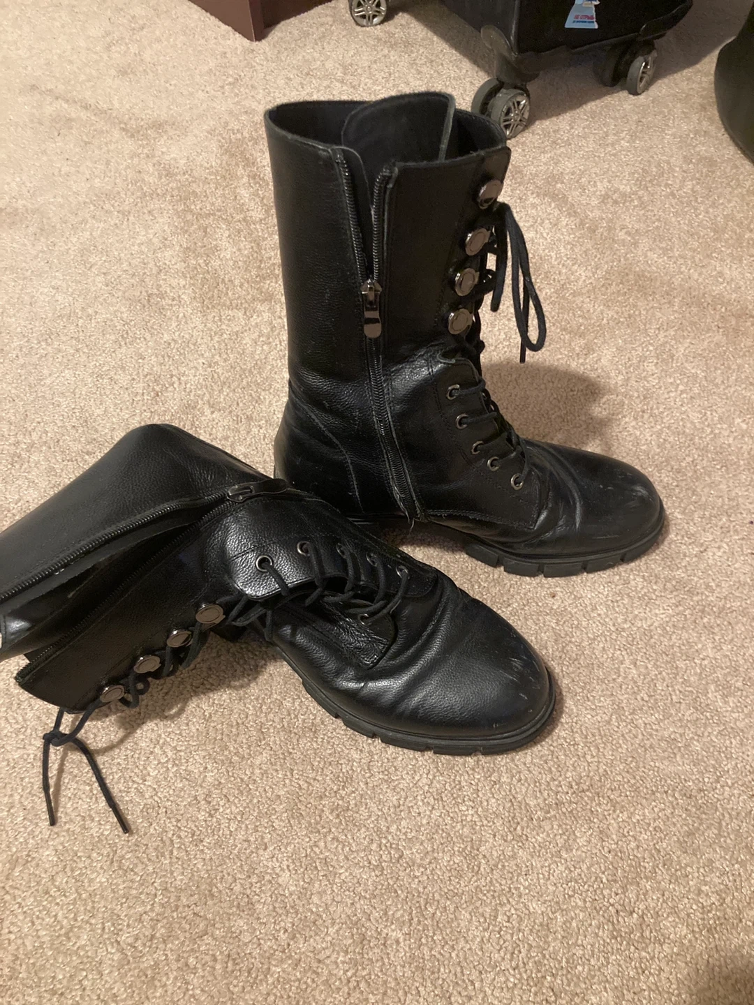 Selling a pair of black genuine leather boots in size 39. one of the zippers is broken but you can still wear them when you lace them up