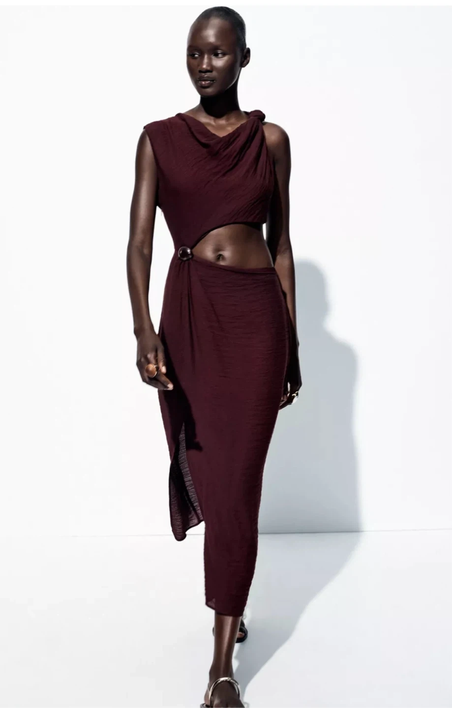 This is a Zara dress with a cut out design. It's a stylish piece that would be a great addition to your wardrobe!