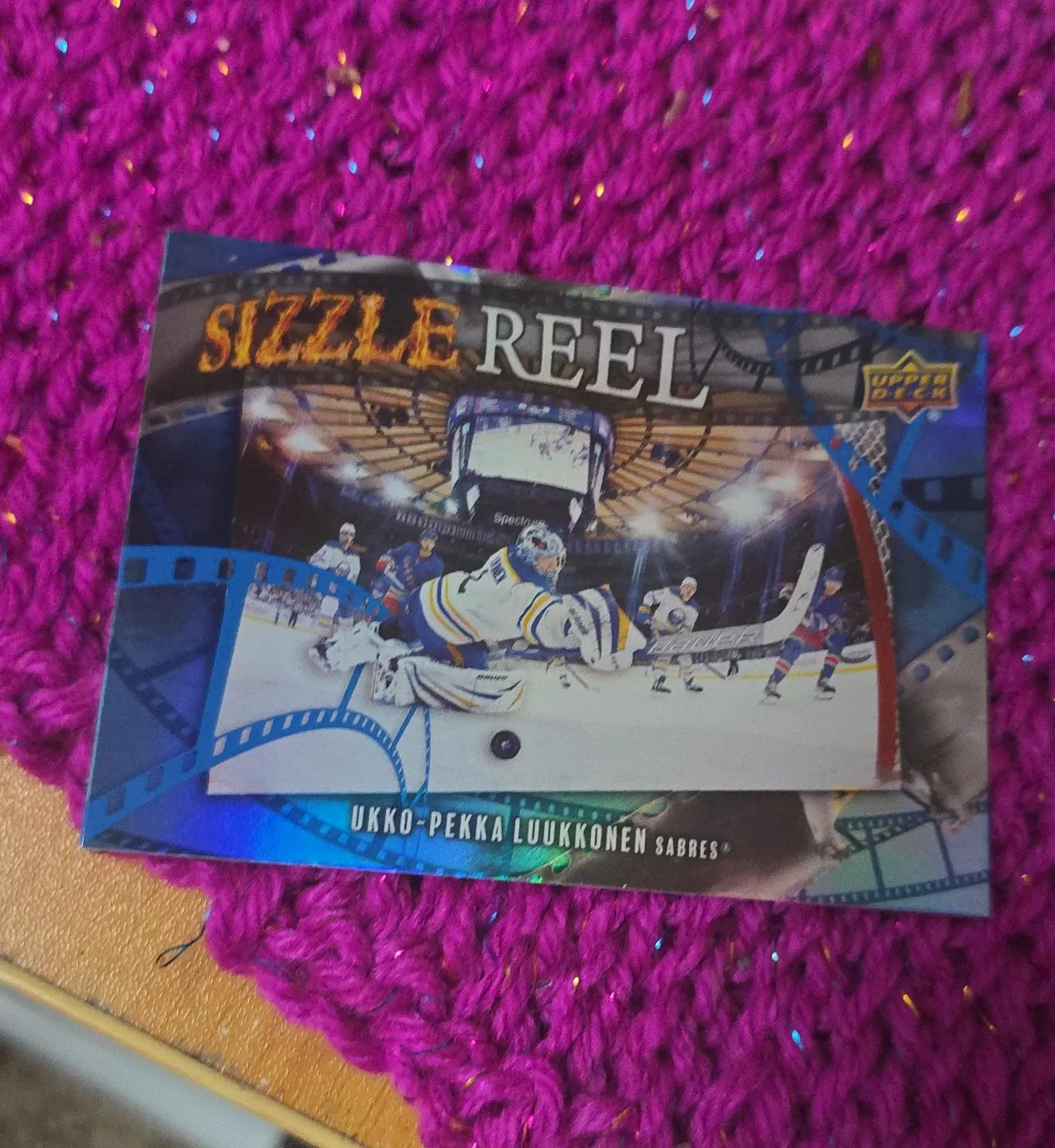 Selling an Upper Deck hockey card featuring Ukko-Pekka Luukkonen from the Sabres. It's from the Sizzle Reel series. A great addition to any hockey card collection!