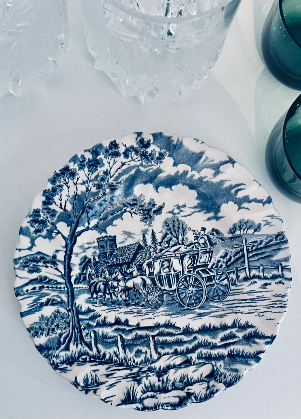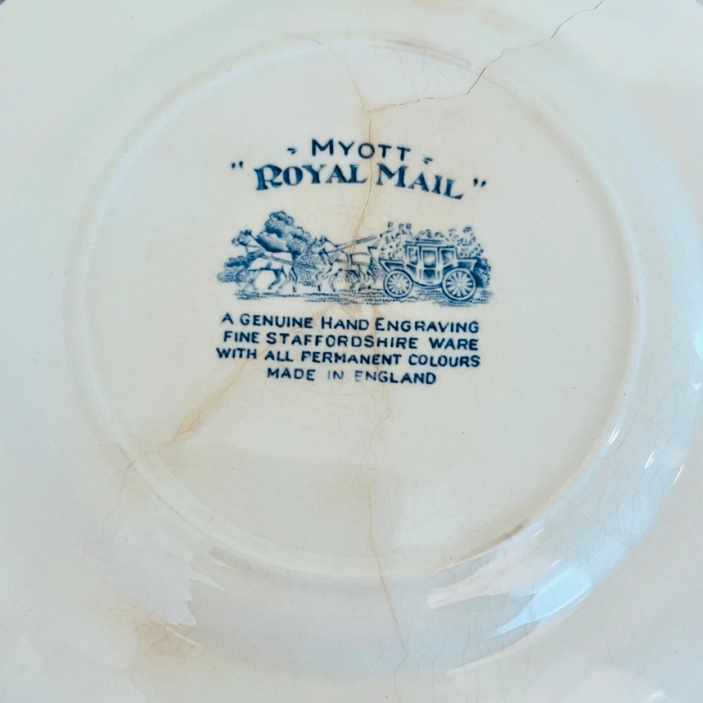 2 Myott Royal Mail plates. The plates feature a genuine hand engraving, fine Staffordshire ware with all permanent colours. It's made in England and has a charming vintage design. No chips but some wear on back on one plate (see pic).