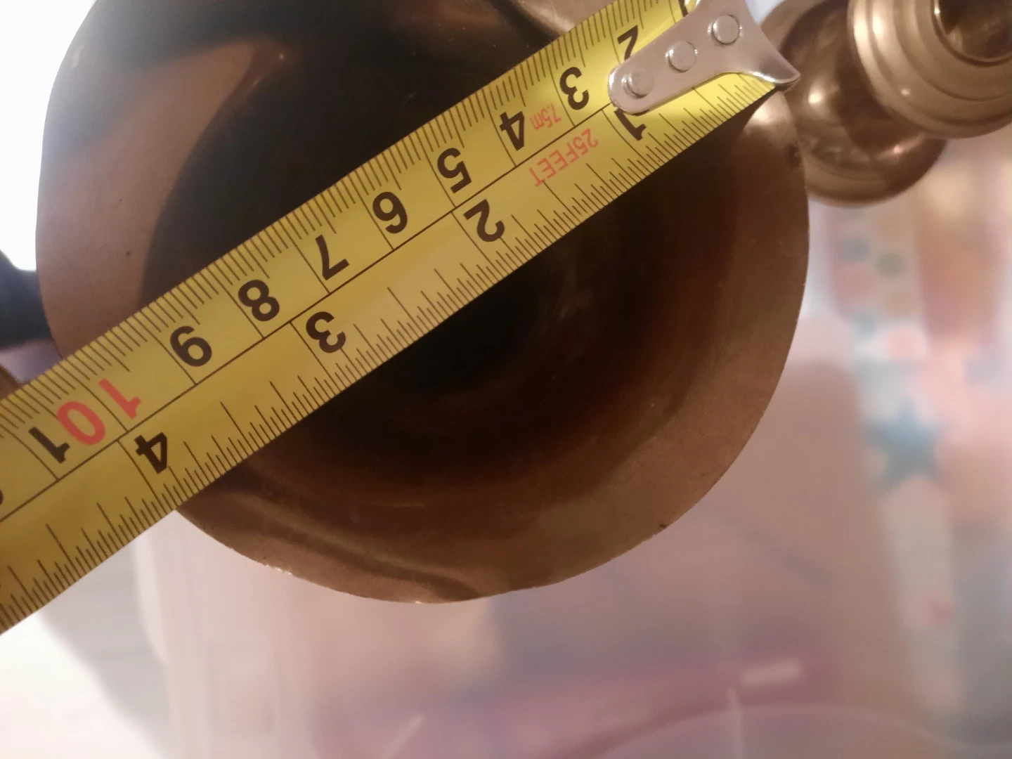 10 cm in diameter at the top of the vase and stands about 25 cm tall.