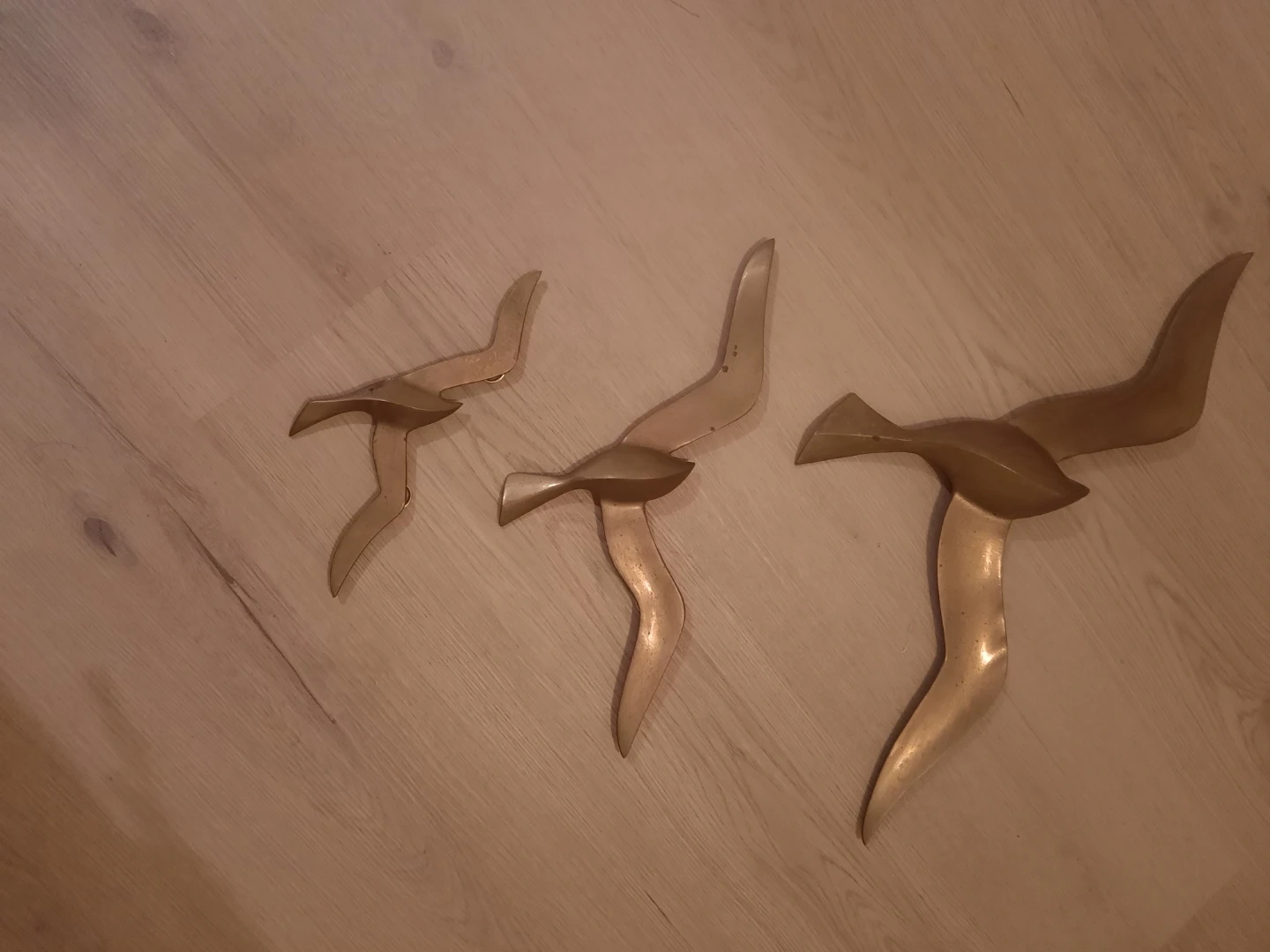 Set of 3 Brass Bird Wall Art Pieces - Size in Photo.