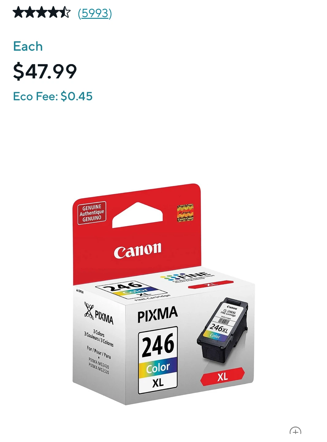 1 / 21 / 2Buy & SellCanon CL-246XL Ink Cartridge - NewCanon CL-246XL Ink Cartridge - New$35Selling a brand new Canon CL-246XL ink cartridge! It's the colour version and ready to go. Retails for $47.99 plus the eco fee.BrandCanonWHERE TO MEETCheck LocationView MapSELLERverifiedDonMetrotown1165 reviews1 chats·0 favorites·10 viewsSEND CHAT TO SELLERHi Don! I’m interested in your listing.Hi Don! I’m interested in your listing.Get the Karrot app to chatSign In to chat
