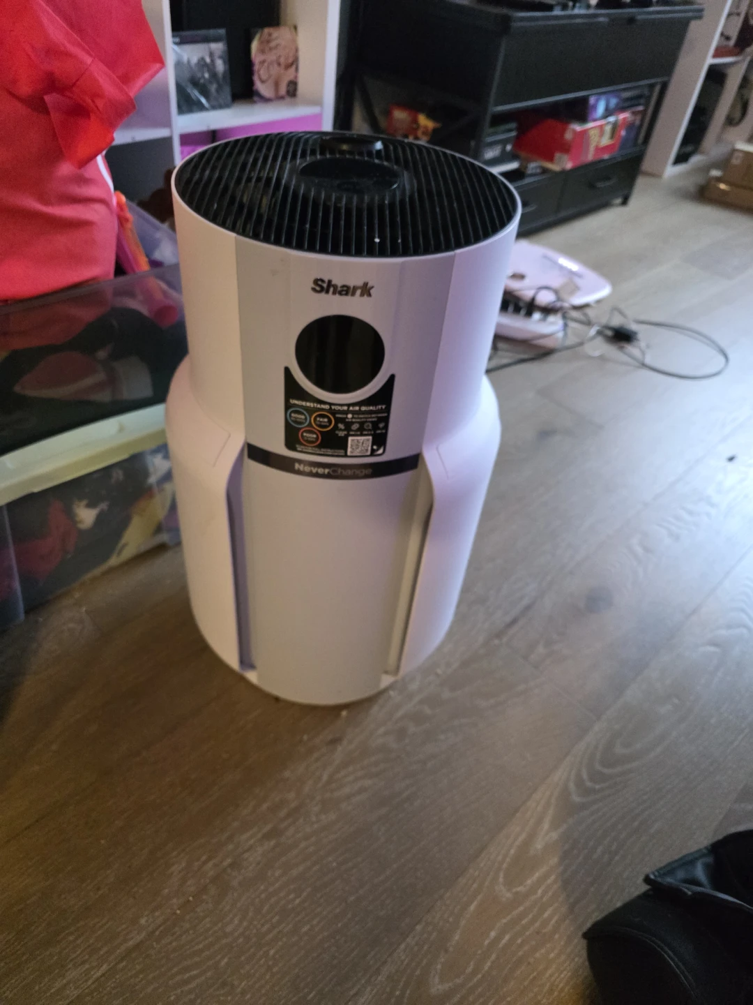 Selling a Shark NeverChange Air Purifier! It's in great condition and ready to help you understand your air quality. Is broken. My birds dropped seed into the fan... I can't fix it, maybe you can before I throw it out