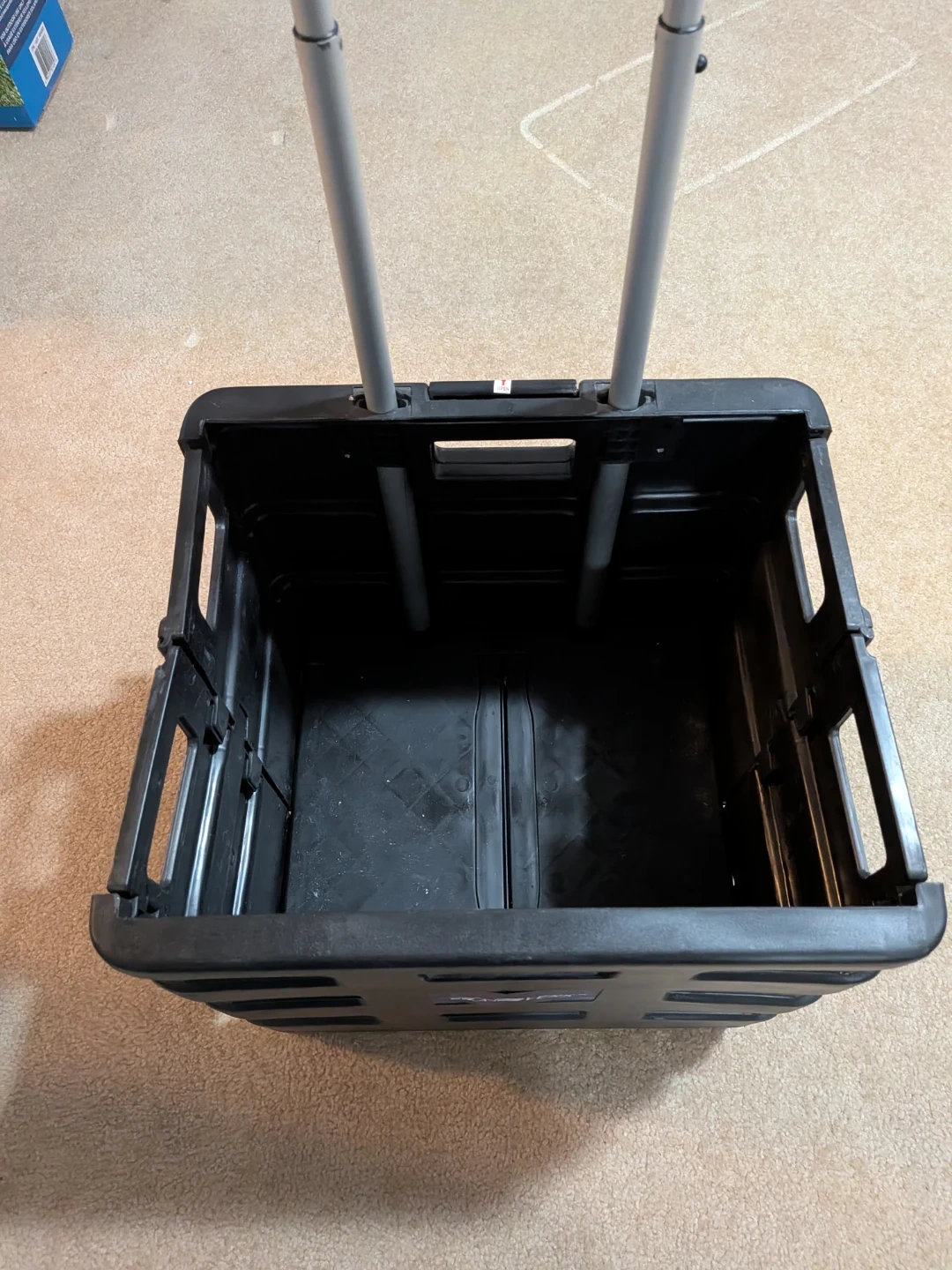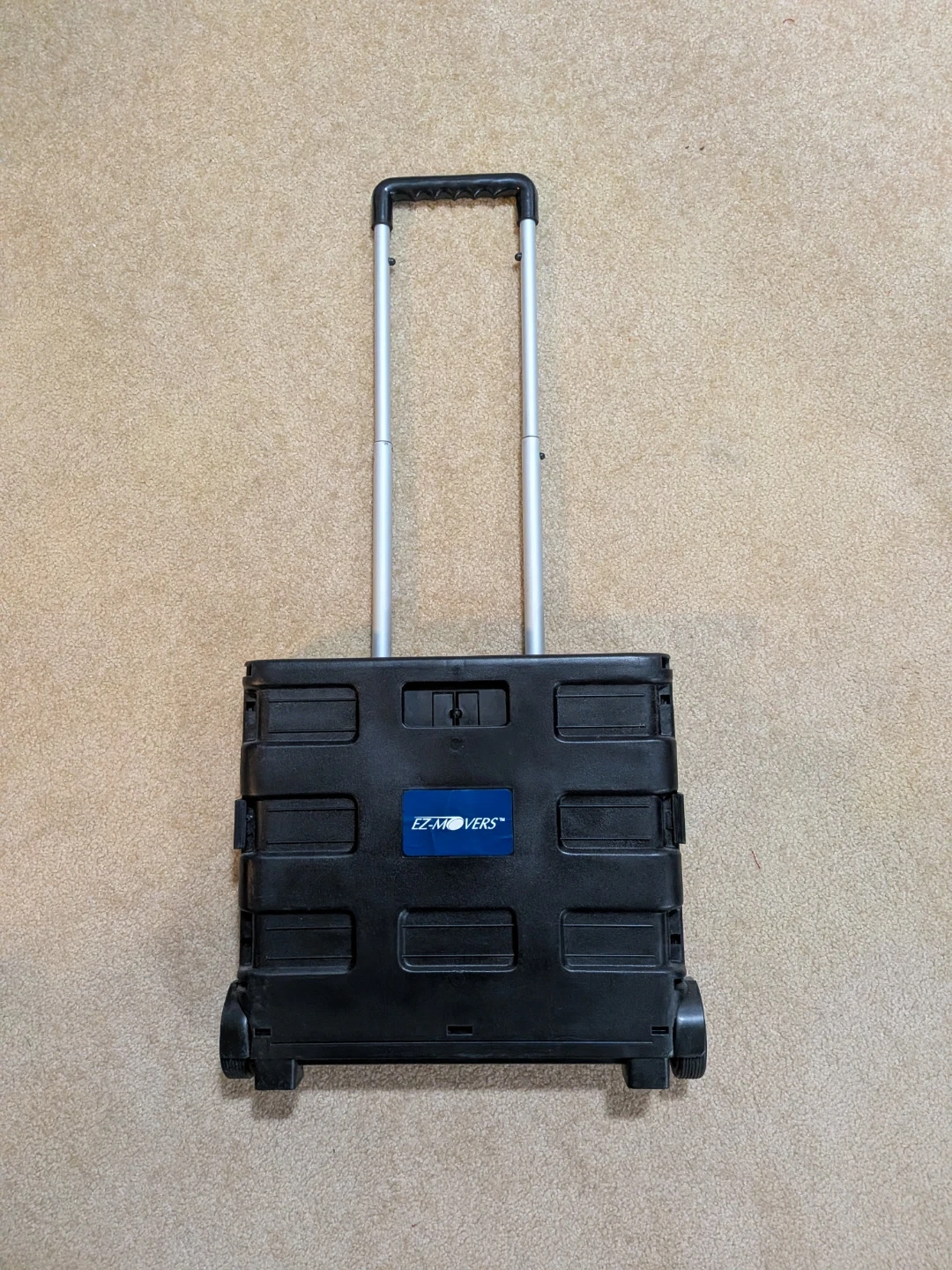 I'm selling an E-Z Movers collapsible rolling crate. It's in great condition and ready to help you move or organize your belongings! It's black and folds up easily for storage