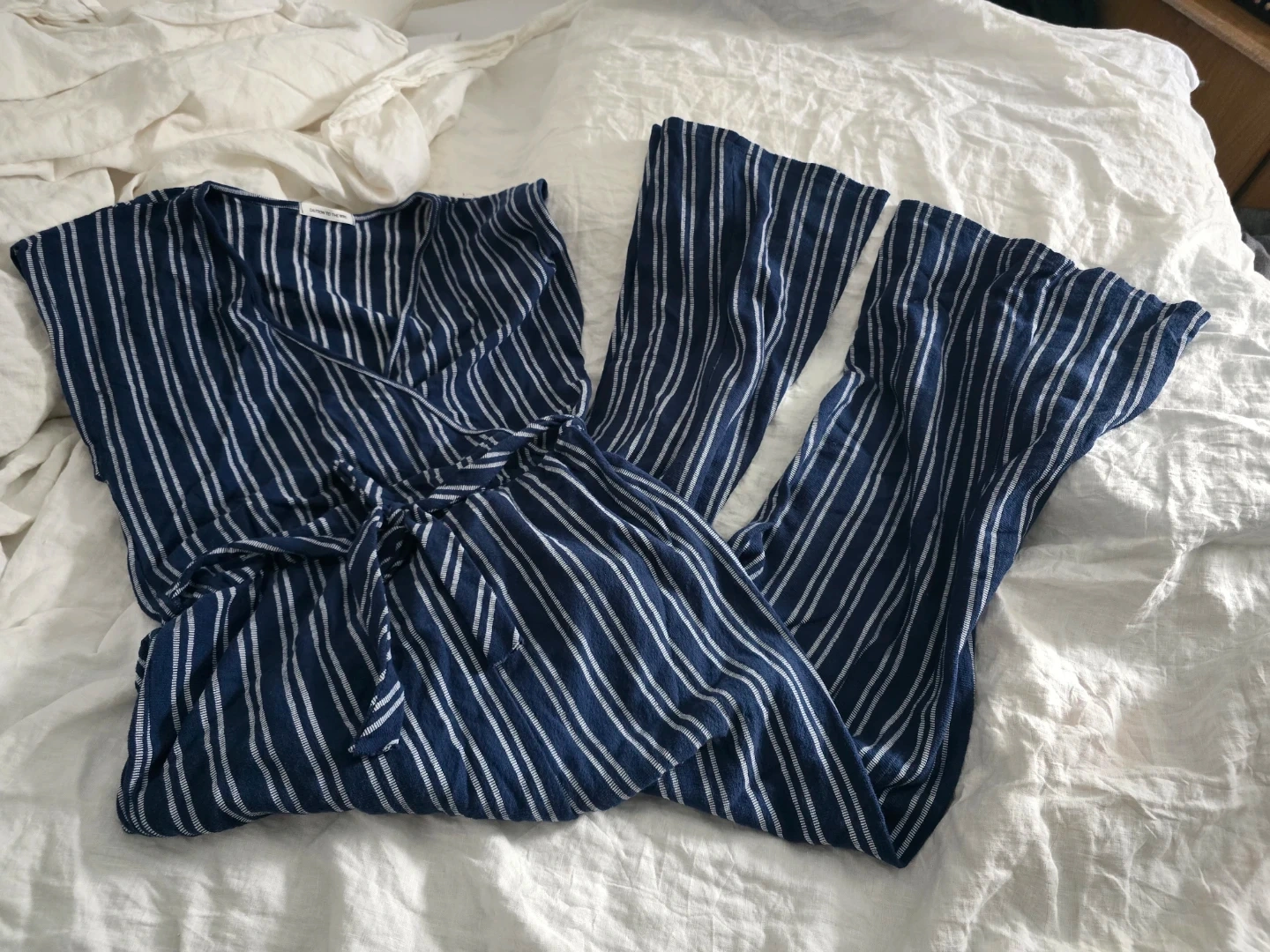 Selling a cute striped jumpsuit from Caution to the Wind! It's a size large and made of 80% cotton and 20% polyester. Perfect for a casual day out or lounging at home. It looks like a Medium.Made in USA .
