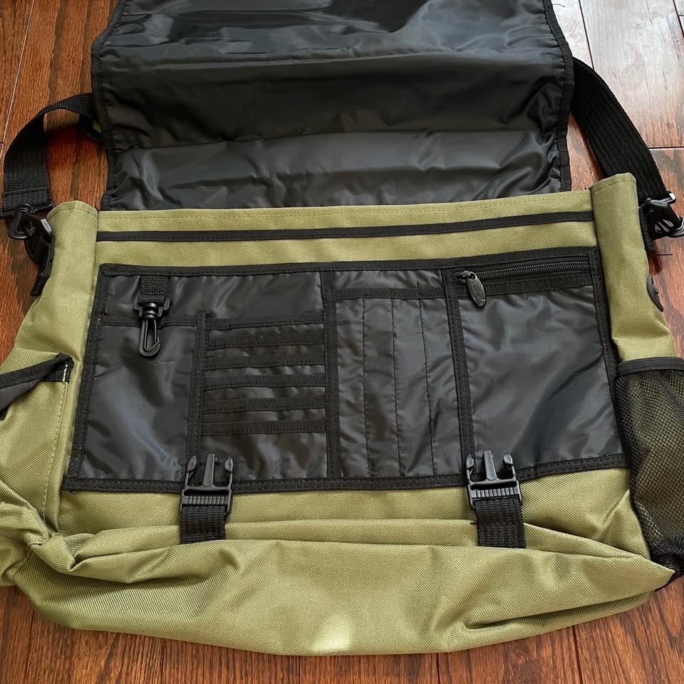 Stylish and functional green messenger bag. Perfect for everyday use with adjustable strap and multiple compartments.