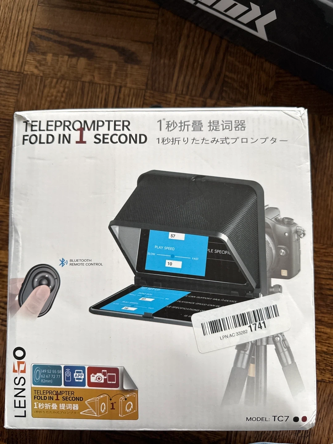 Selling a LENSO teleprompter that folds in 1 second! It comes with Bluetooth remote control and supports multiple devices. The model number is TC7. It's in great condition and includes the original box