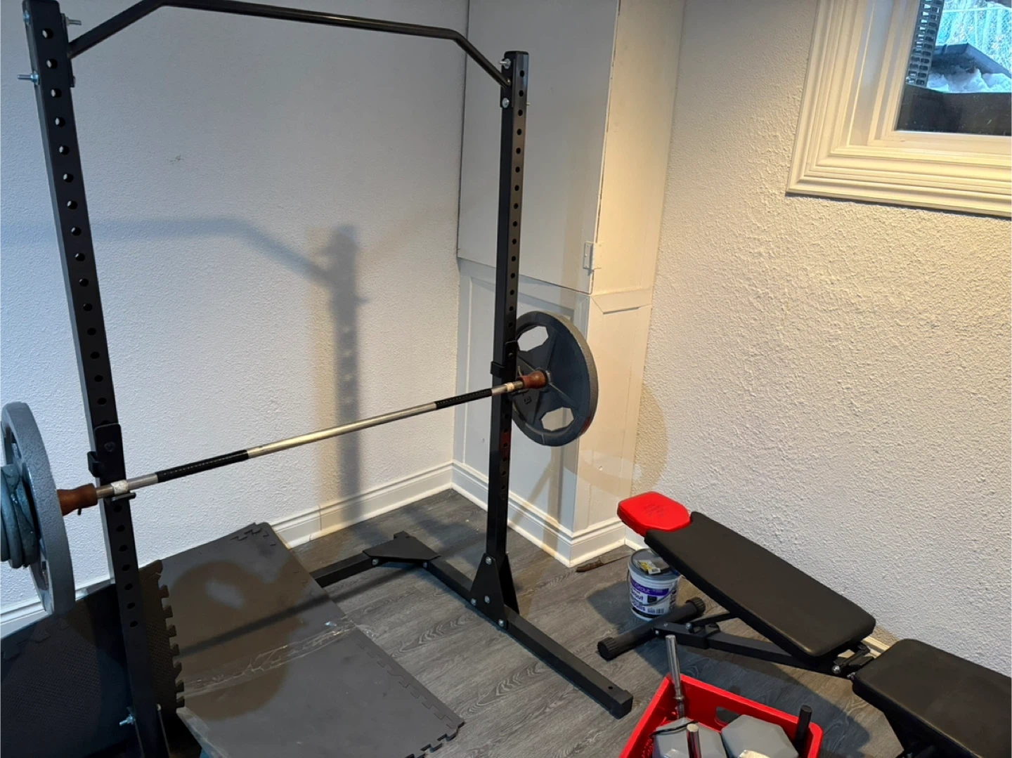 I have two 55 pound plates and ten 10 pound plates with a number of 5s, enough to squad or bench up to 300 pounds. Buy parts or together, but I honestly won’t haul weights out for less than 100 bucks. 240 for everything without plates, 400 with the plates