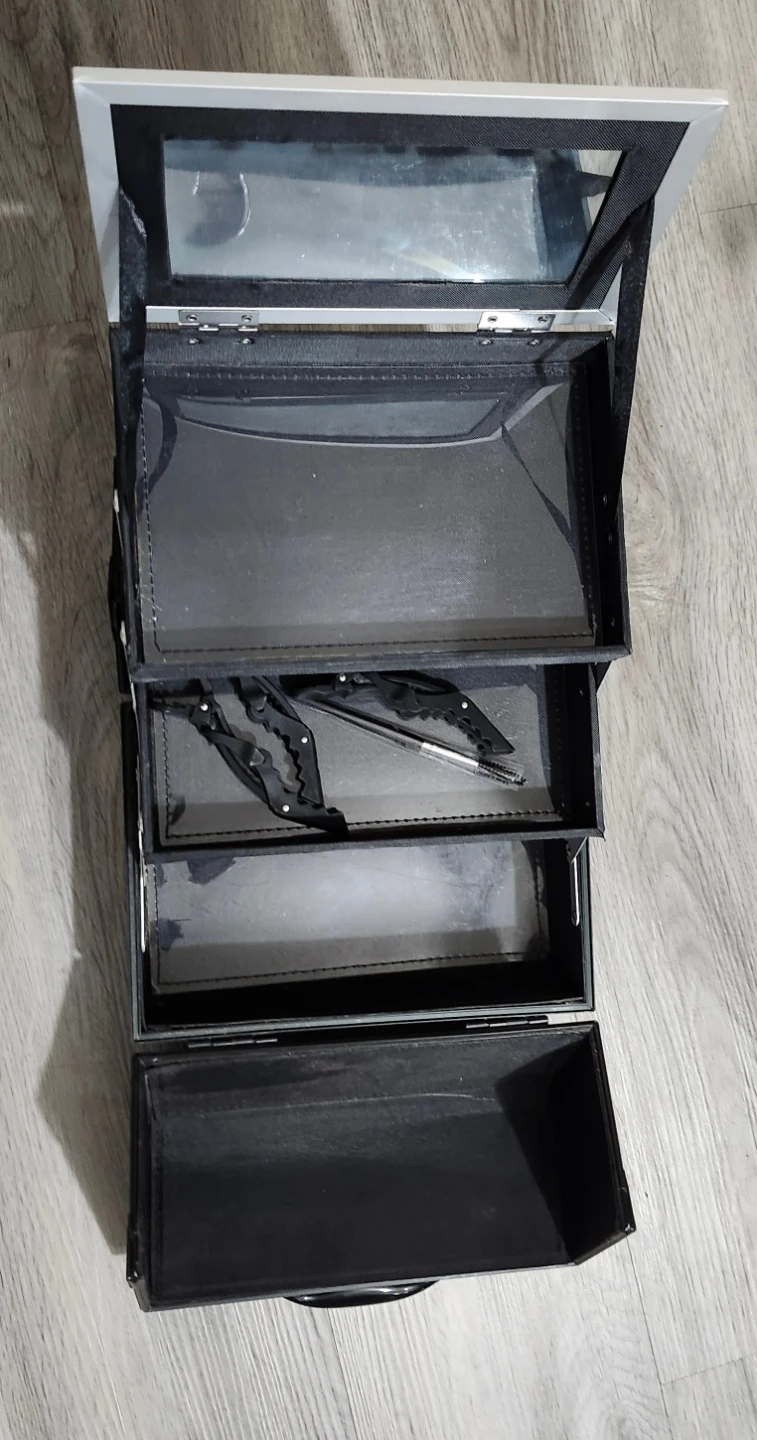 Selling a SONGMICS black makeup train case. It's in good condition and ready for a new owner! Perfect for organizing your makeup and beauty products