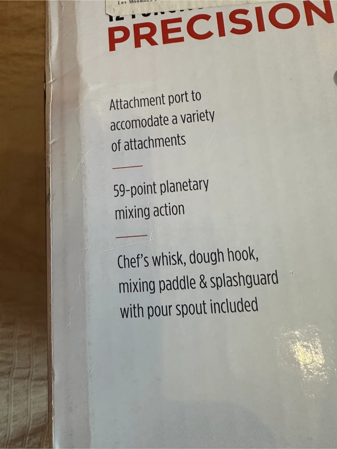 Comes with Chef’s Whisk, Dough Hook, Mixing Paddle & Splashguard with Pour Spout m). Has attachment port to accommodate a variety of attachments (pasta roller, meat grinder, etc)