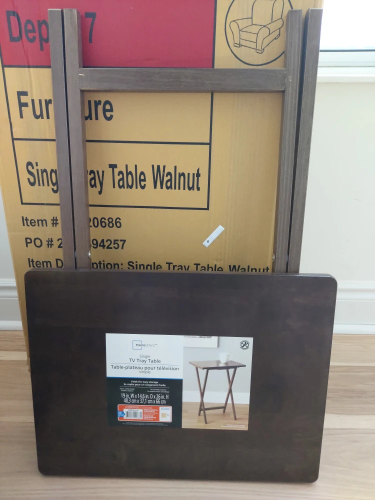 Selling Three (3) Mainstays single tray tables in walnut finish!