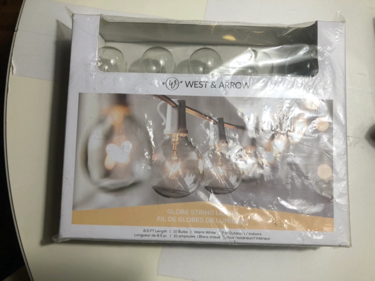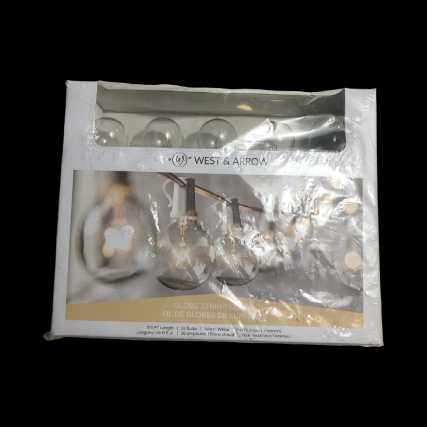 Add a warm glow to your space with these West & Arrow globe string lights! They're 8.5 ft long and feature 10 bulbs with a warm white light. Perfect for both indoor and outdoor use. Brand new in the original box.