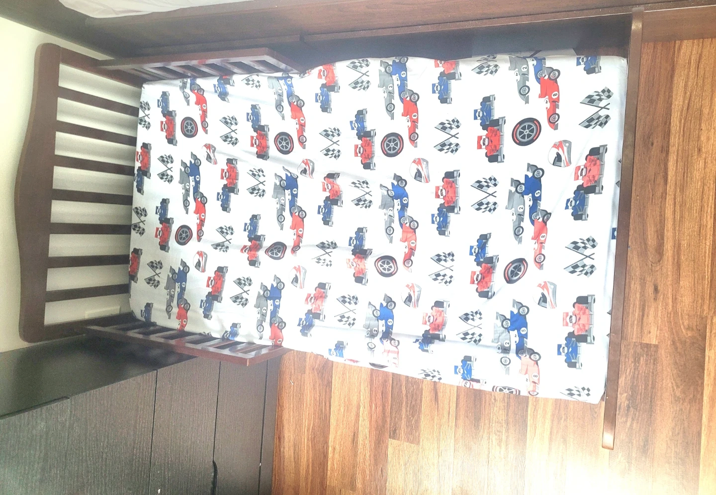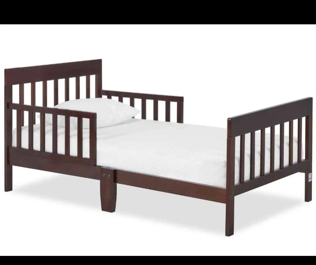 This toddler bed is in great condition and features safety rails to keep your little one secure. The espresso finish gives it a classic look that will fit in any room. Perfect for transitioning your child from a crib to a bed! Mattress included in clean condition. Always used with waterproof mattress cover. No stains, no accidents.