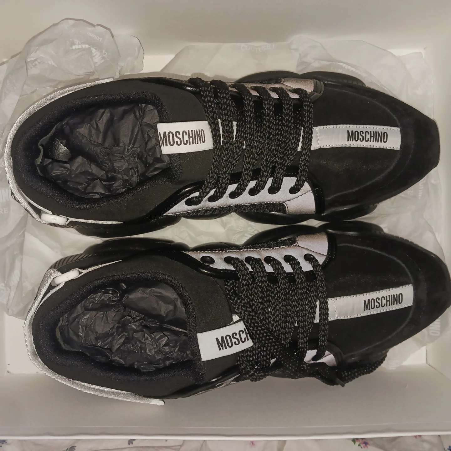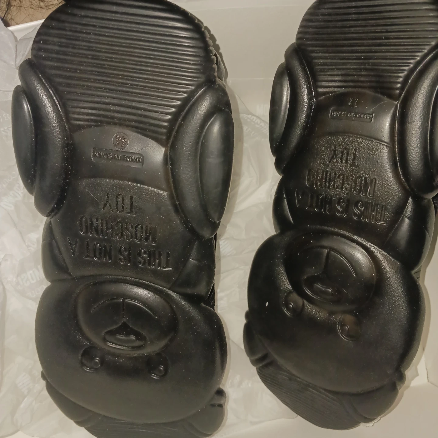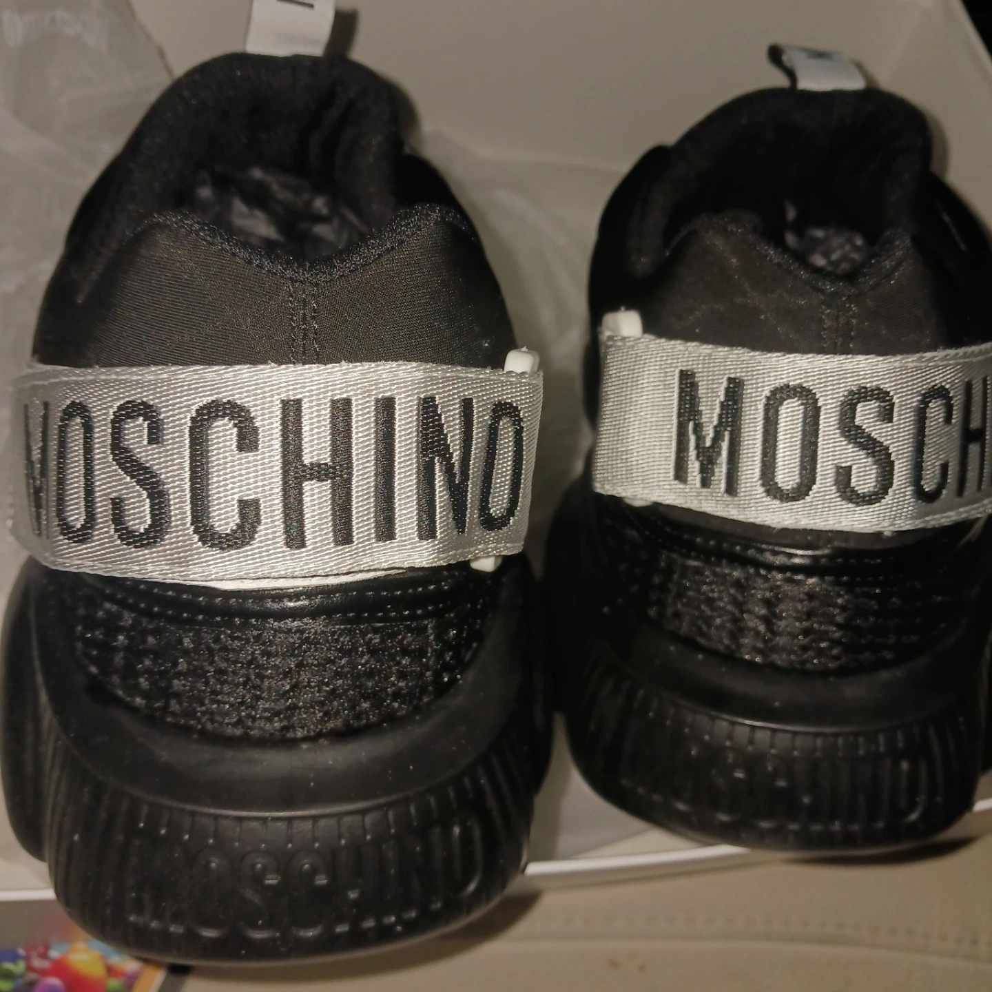 These Moschino Teddy Bubble sneakers are in great condition and come with the original box! They feature a unique bubble sole design and the Moschino logo. Perfect for adding a touch of luxury to your casual outfits