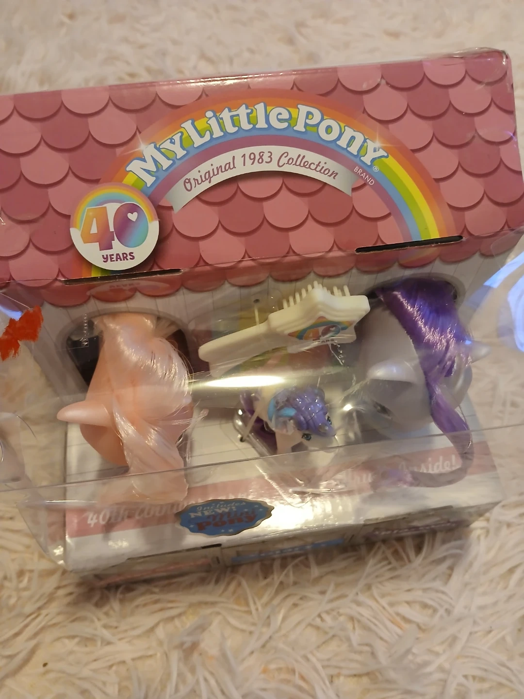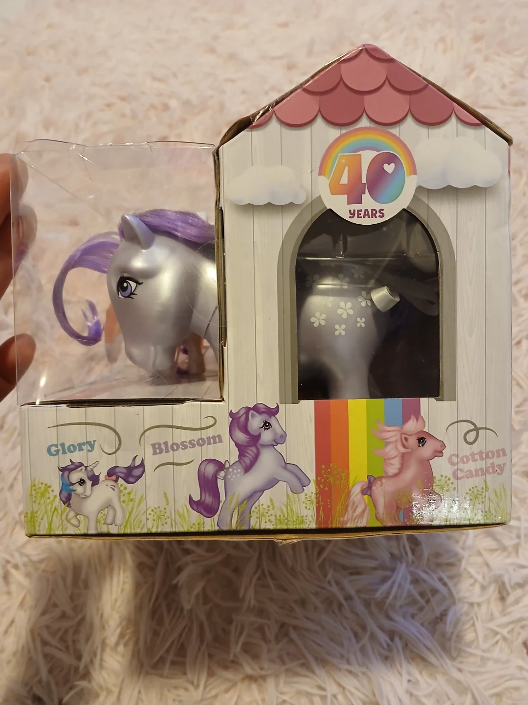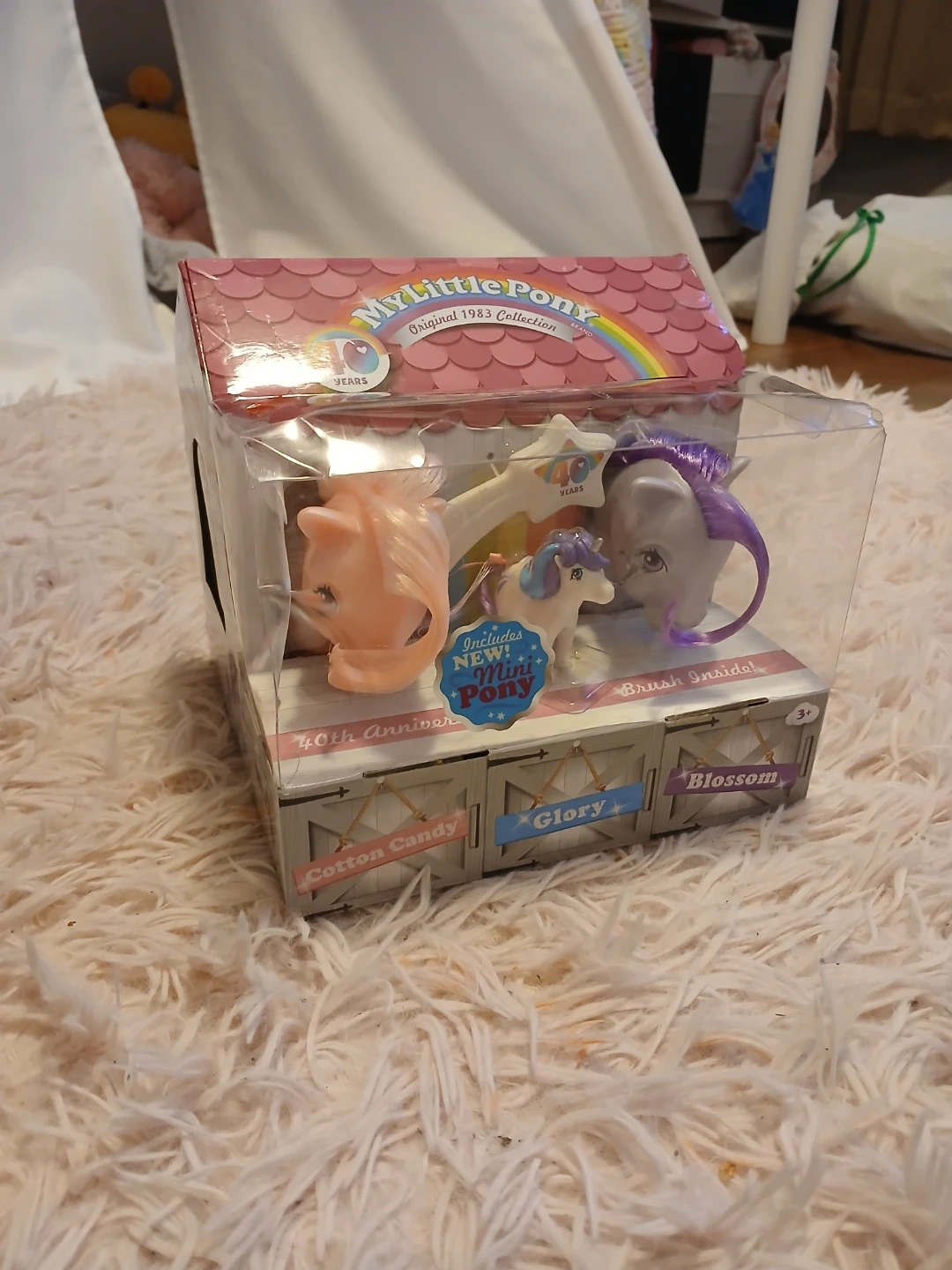 Brand new My Little Pony Original 1983 Collection 40th Anniversary set! This set includes Cotton Candy, Glory, and Blossom ponies. It also includes a mini pony and a brush. The box is included, making it a perfect gift for any My Little Pony fan