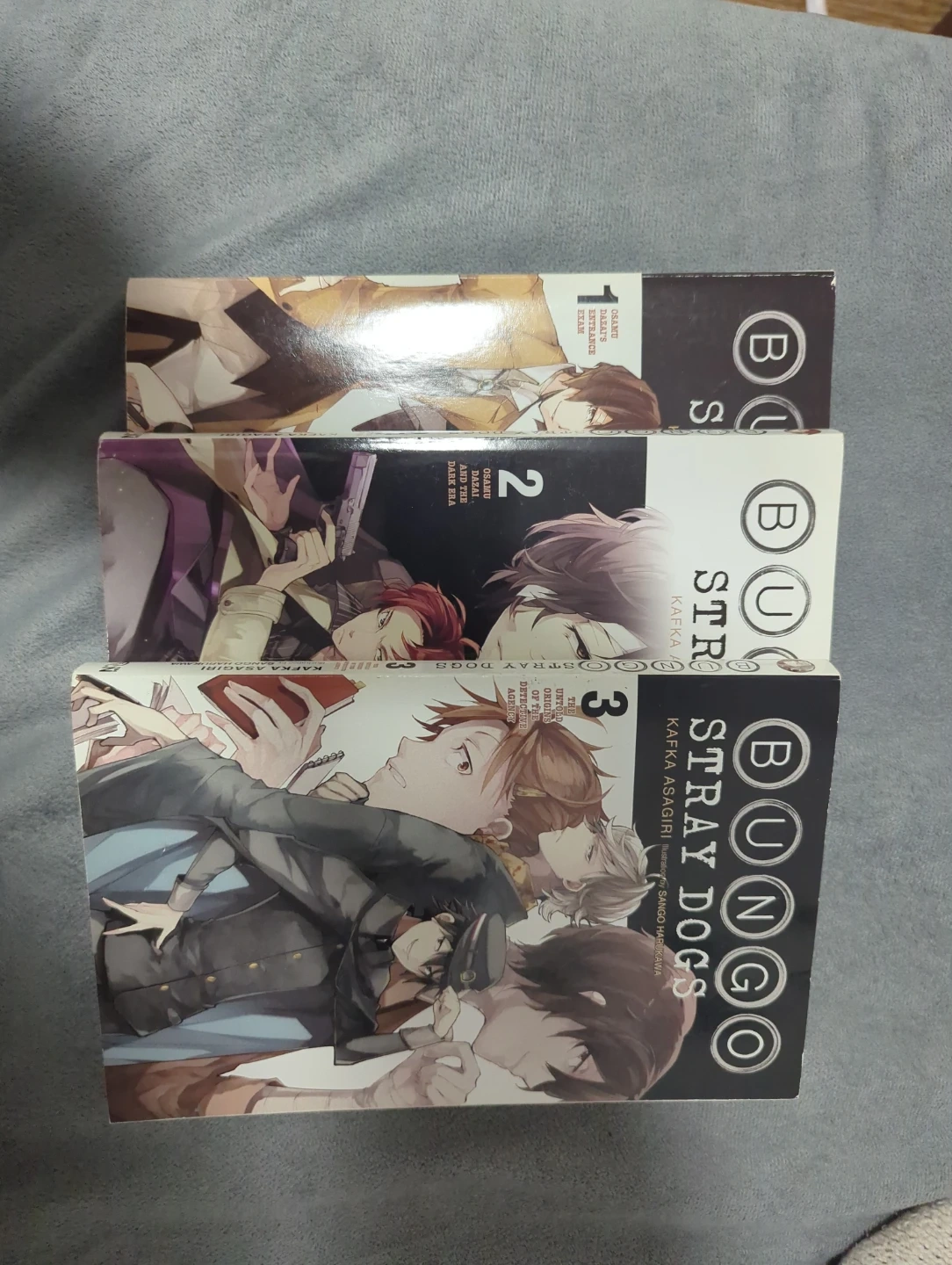 Selling volumes 1-3 of the Bungo Stray Dogs manga series by Kafka Asagiri! They're in great shape and ready for a new reader. Perfect for anyone interested in action, mystery, and supernatural abilities.