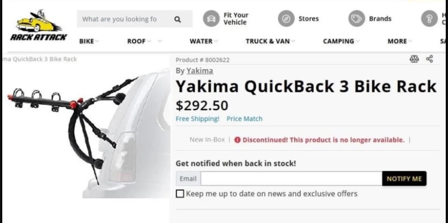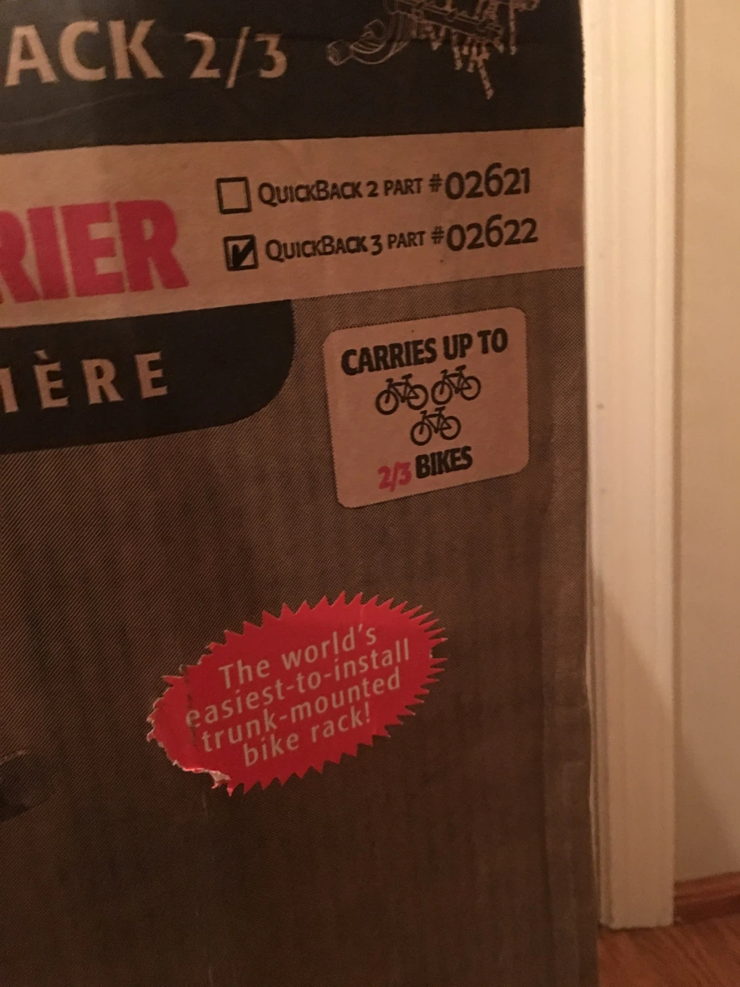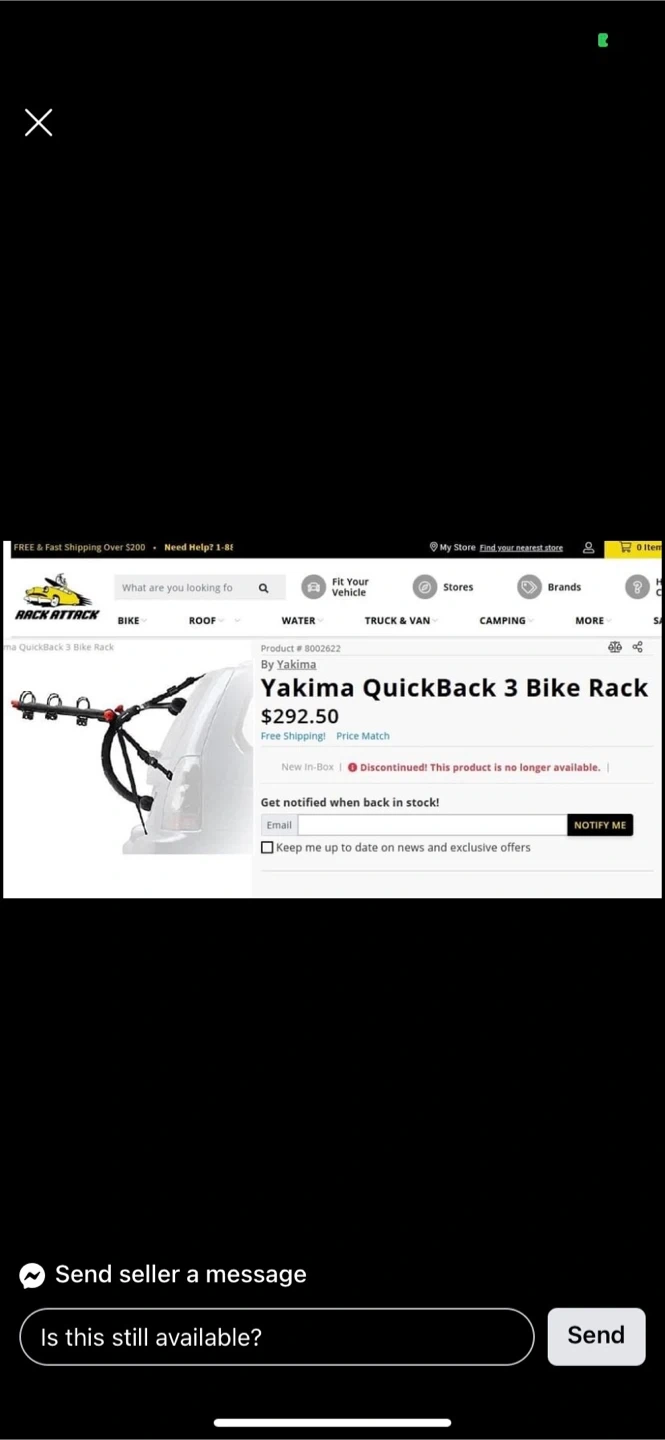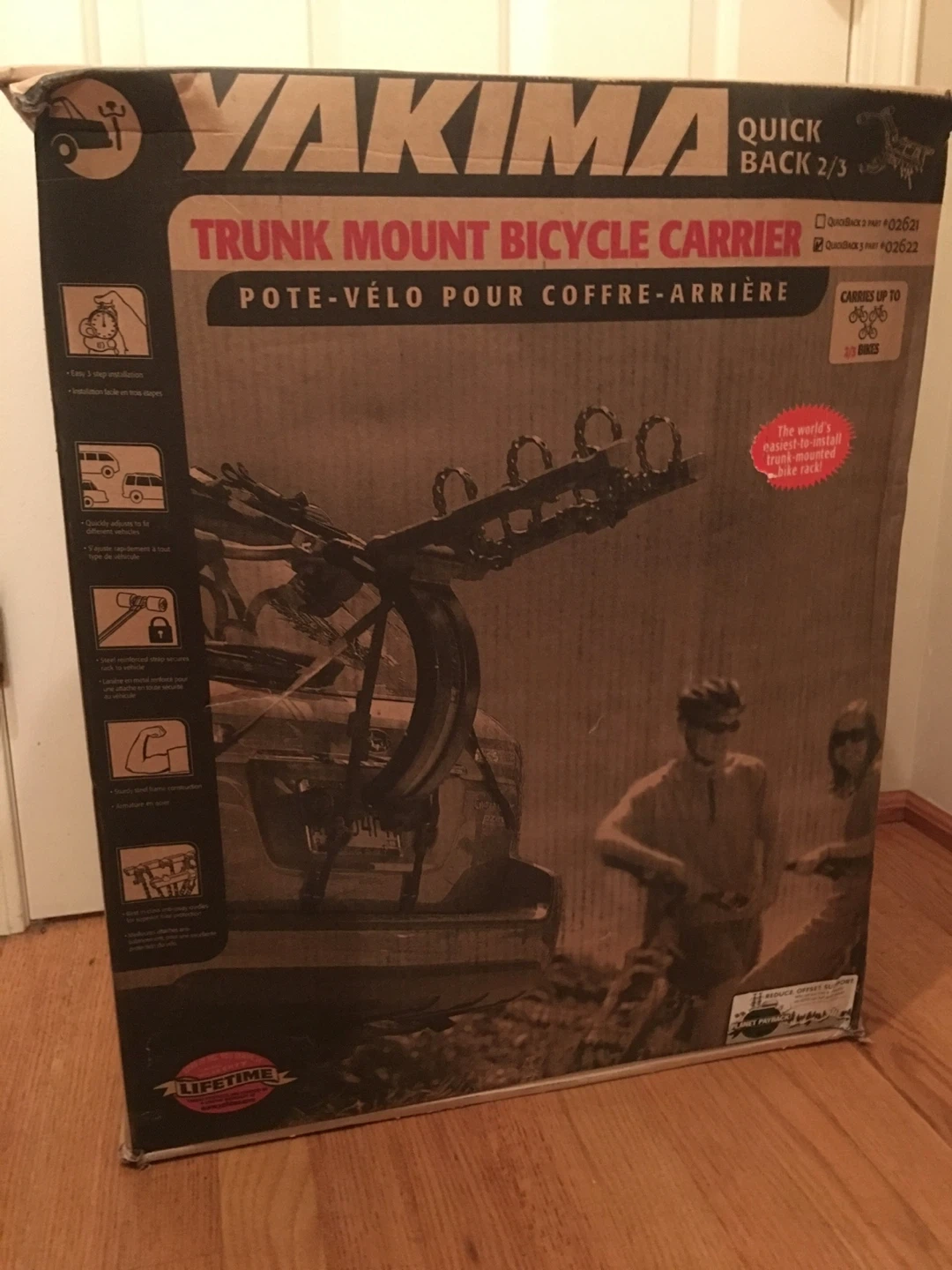 Selling a Yakima QuickBack 3 trunk mount bicycle carrier! It's designed to carry up to 2 or 3 bikes. The box is included, and it's known as the world's easiest-to-install trunk-mounted bike rack