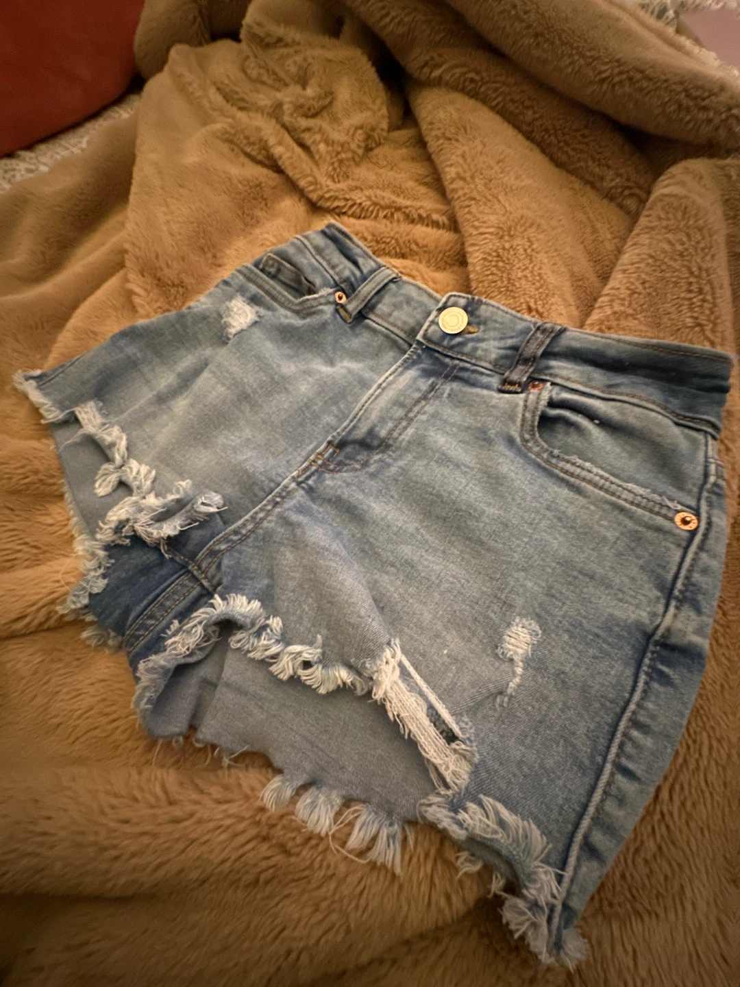 Refuge Denim Miami high-rise stretch shorts in size 0 are up for grabs! They're a cute light wash denim with a bit of a distressed look. Perfect for summer!