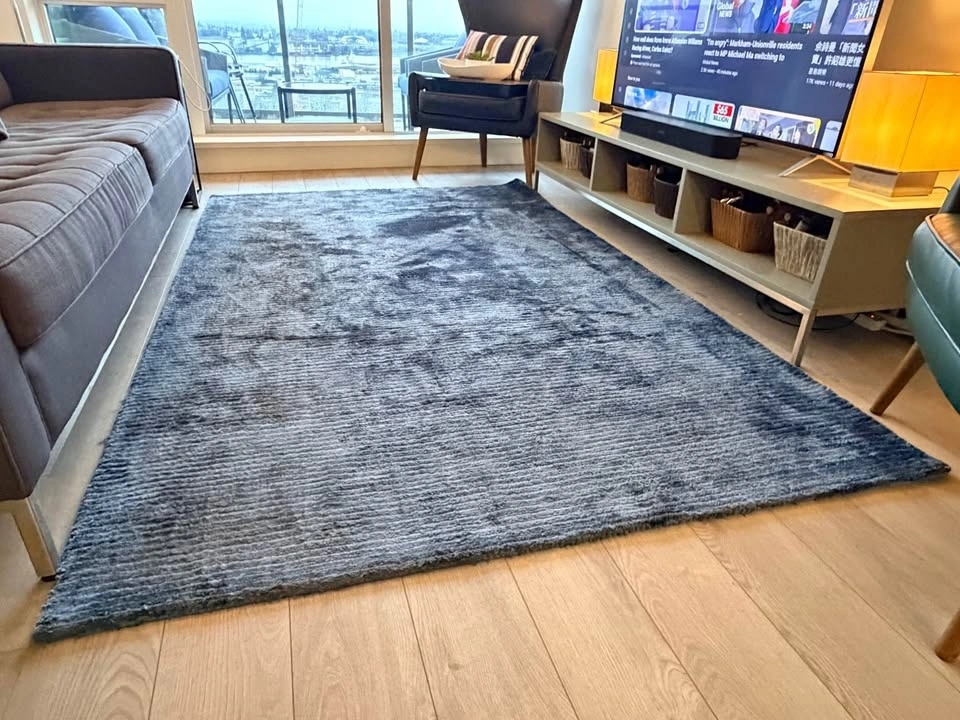 Used in a smoke-free, pet-free condo that is air-conditioned year-round and no family/kids. No stains. Some natural shading and light pile variation adds softness and cozy character while keeping modern feel, as shown in the photos.