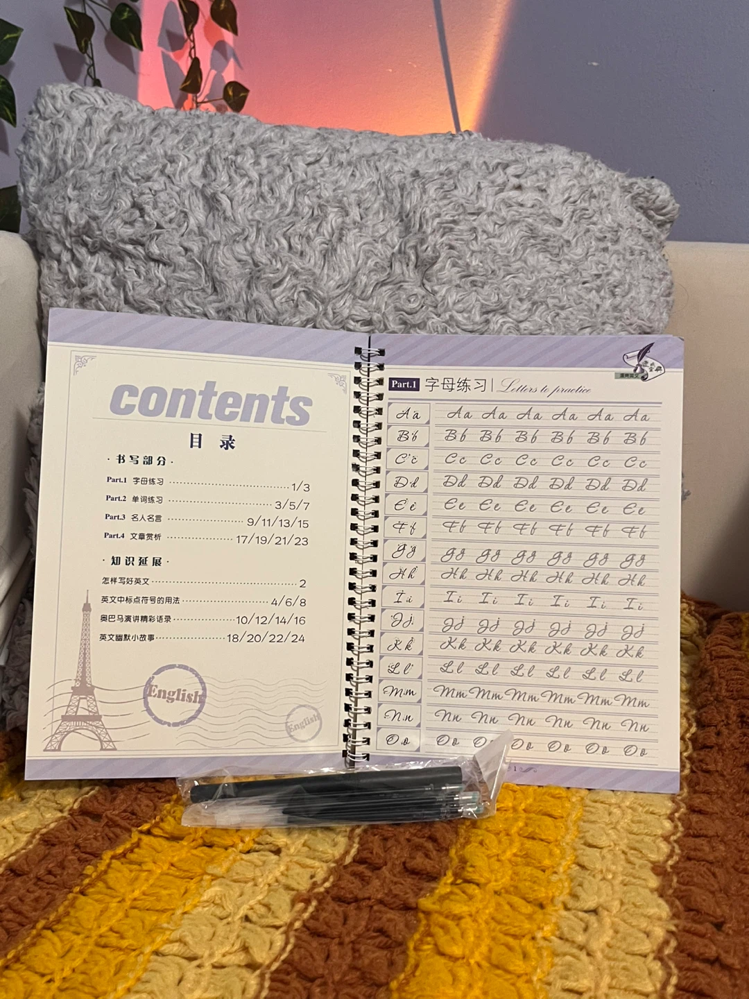 Selling a set to help you practice writing beautiful English! The set includes a practice book and pens. Perfect for anyone looking to improve their handwriting and language skills