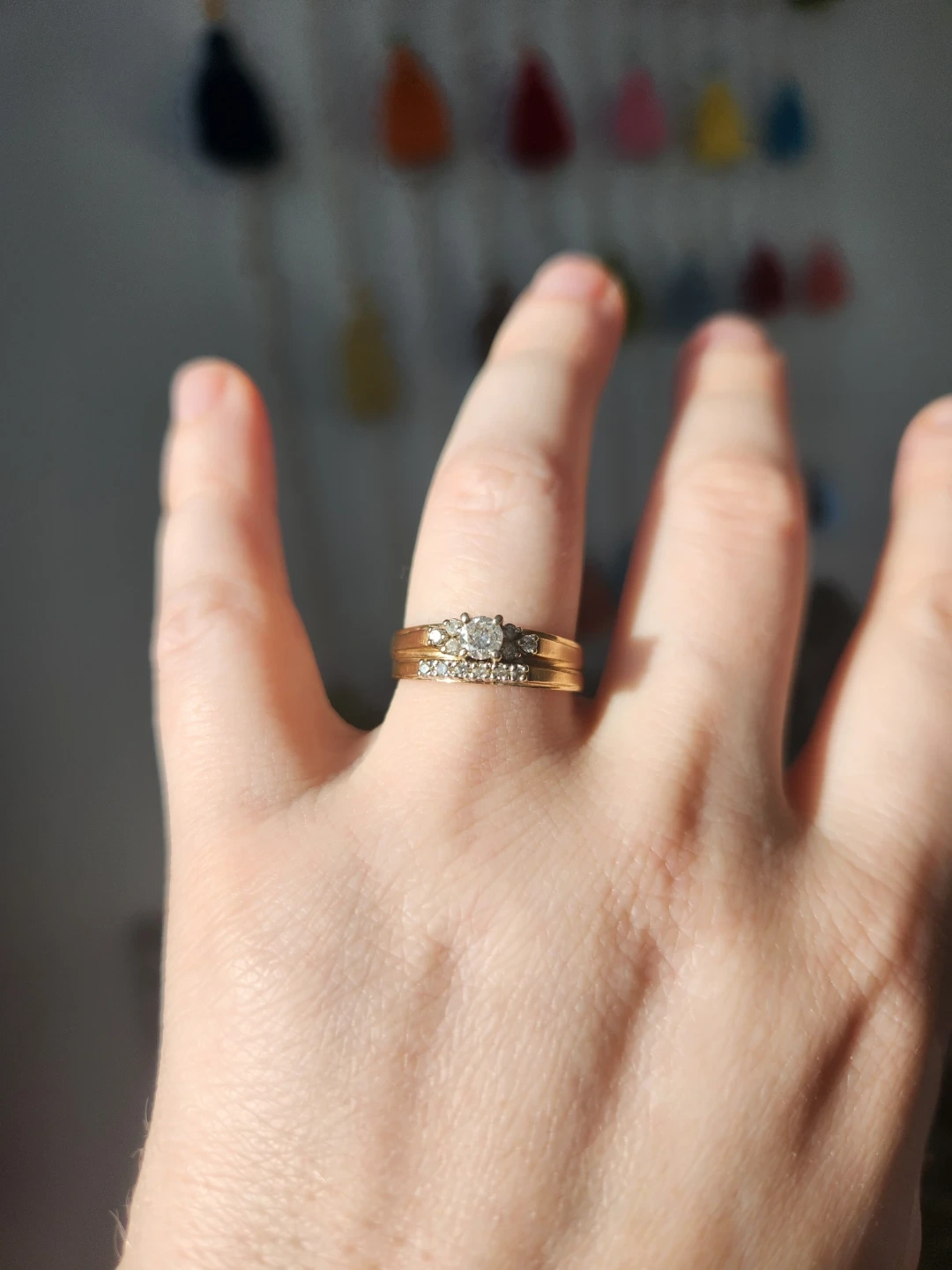 I have for offer a vintage 14K gold stamped wedding ring and engagement ring set.
