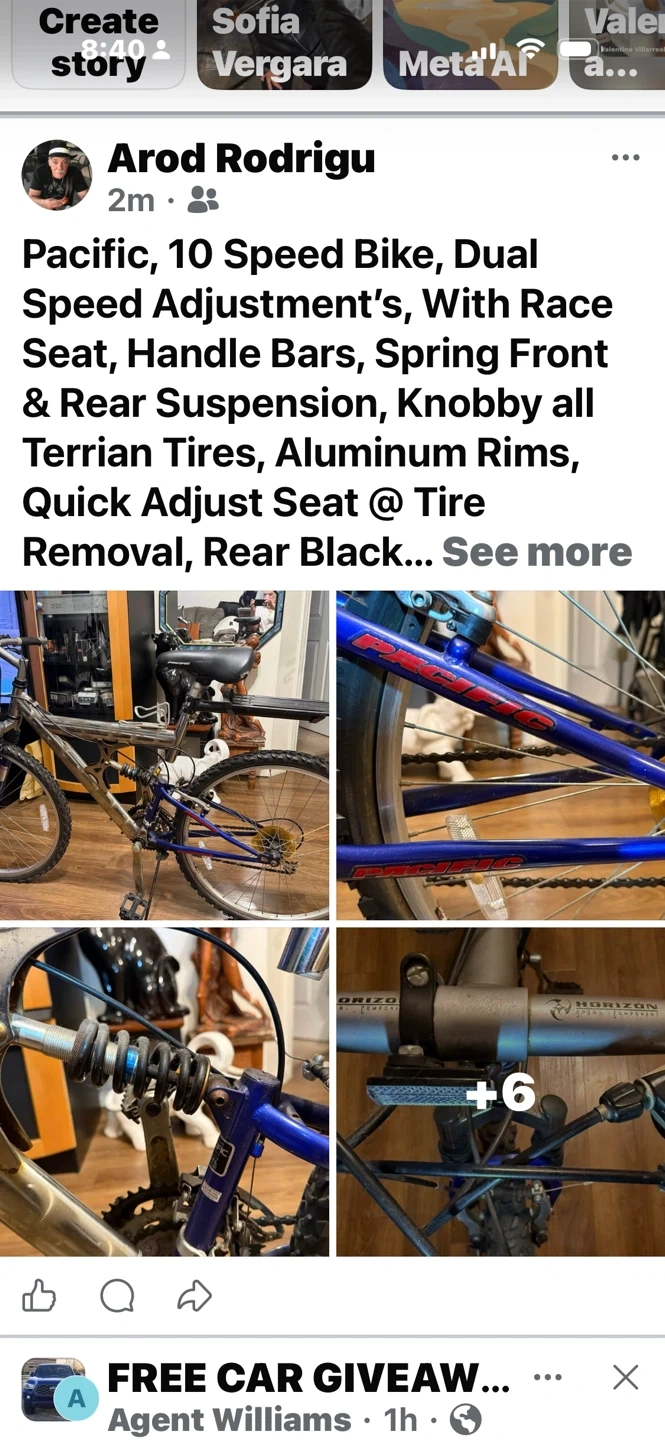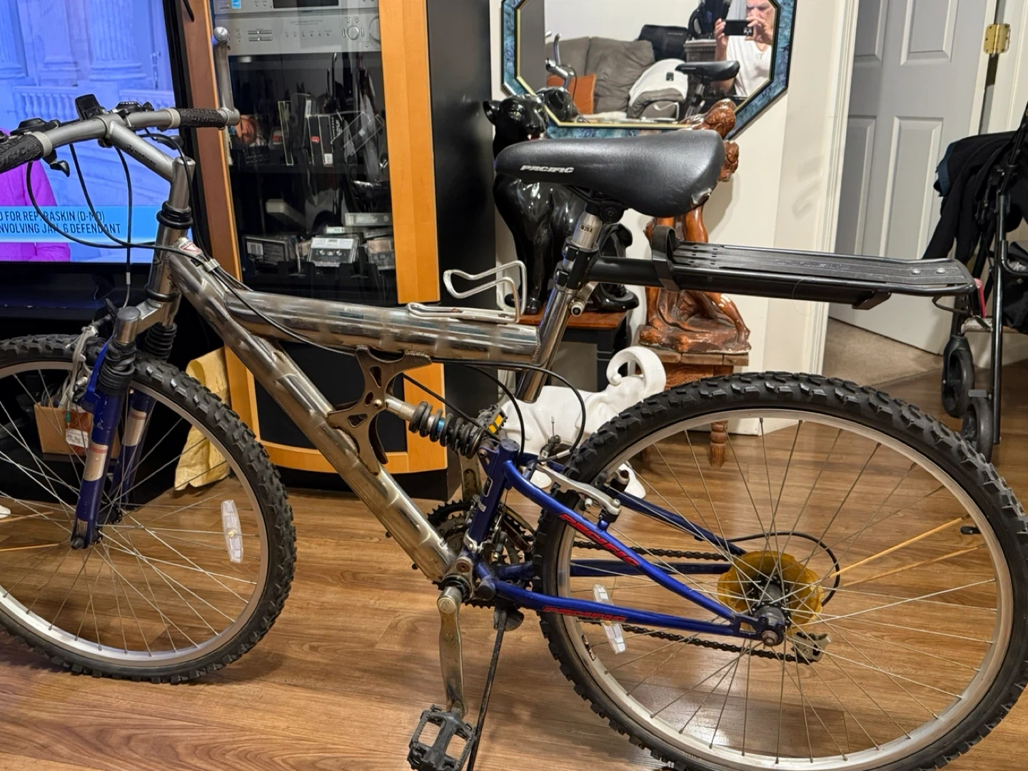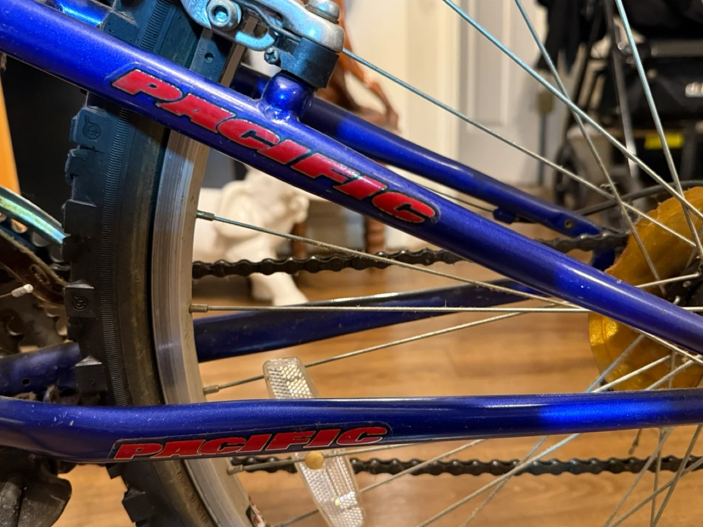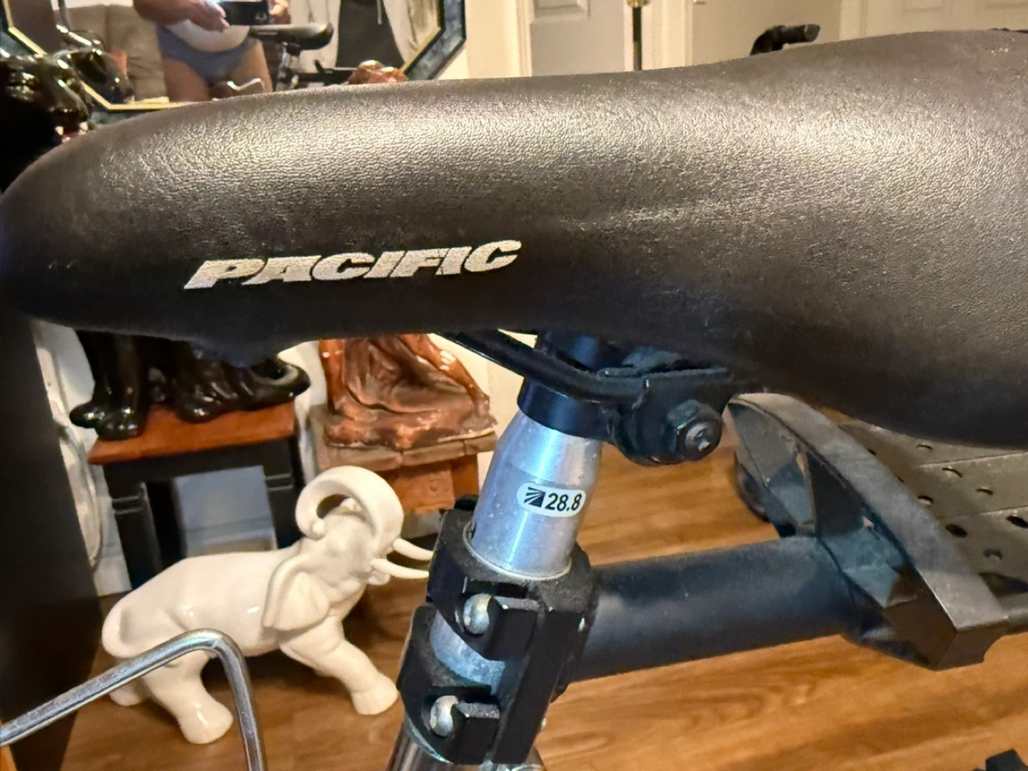 Selling a Pacific mountain bike. It has Horizon Sport Component handles and Shimano V-Brake levers. It's blue and silver.Big Pig Aluminum Rims,/ Heng Shim Knobby Mountain Tires. Quick Disconnect, Wheels, Race Seat ? $135, ObO. John (631)879-8148