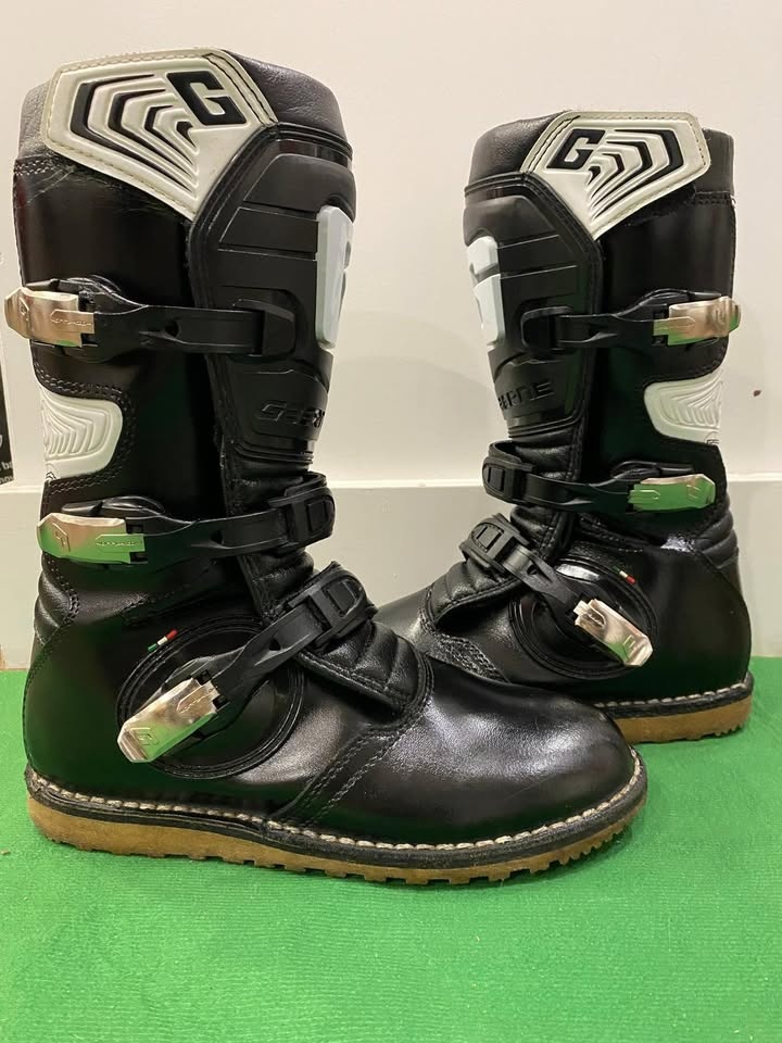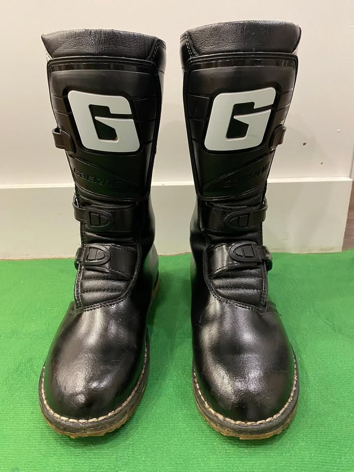 Selling a pair of motocross boots — brand G (made in Italy), size 9 USA. These boots are in excellent used condition: clean, structurally intact, with some normal scratches from light use but all buckles working perfectly and no sole wear. Ready to ride again.
