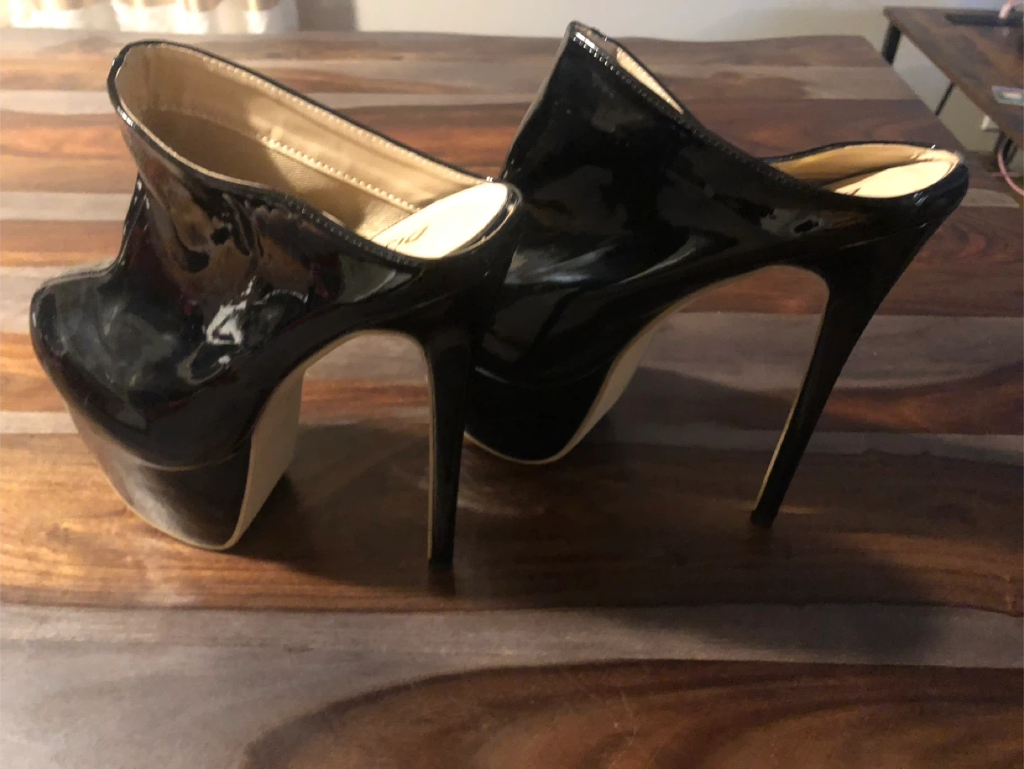 Selling a pair of stylish black patent leather heels. They are a European size 42. Perfect for adding a touch of elegance to any outfit!
