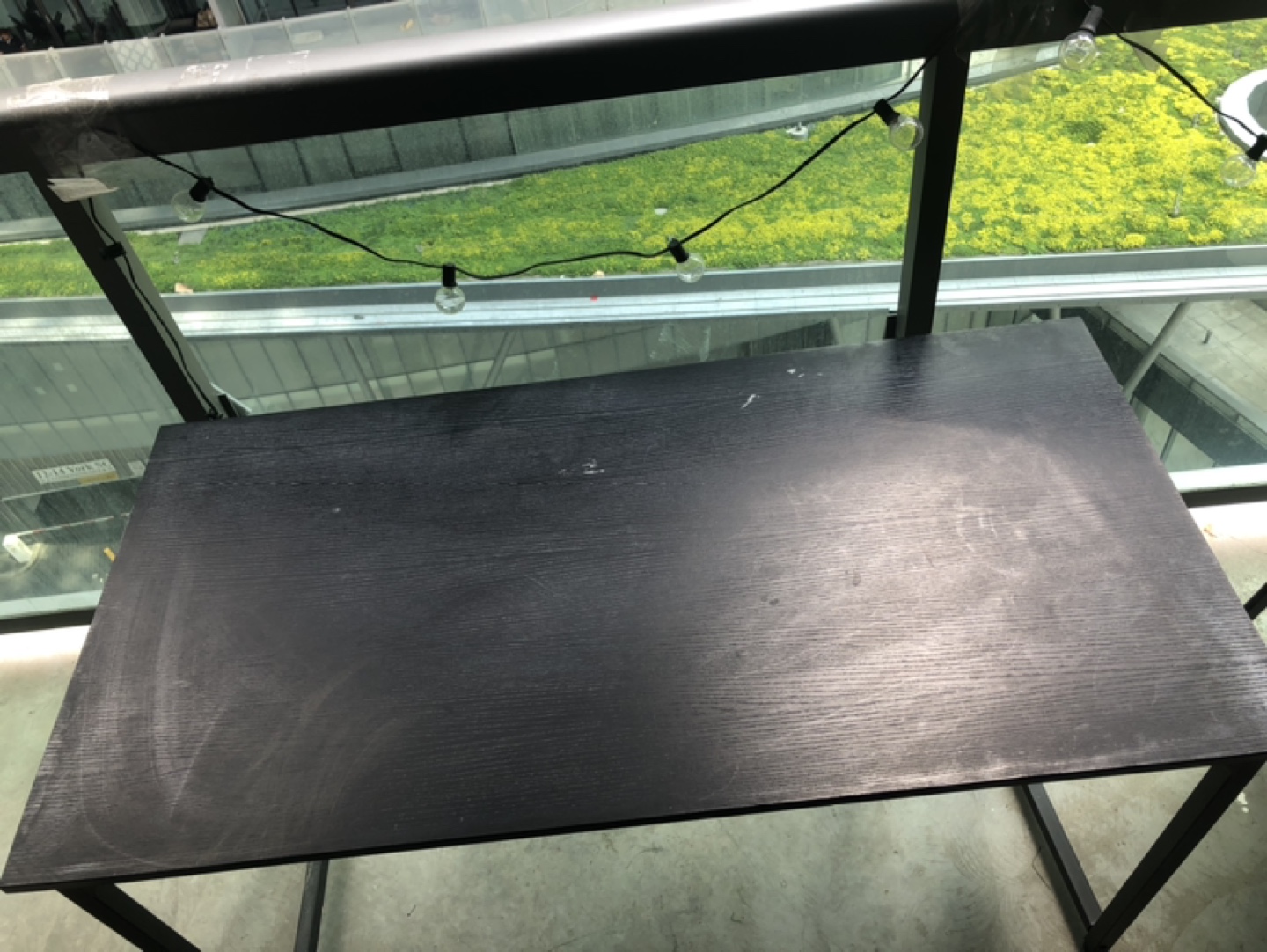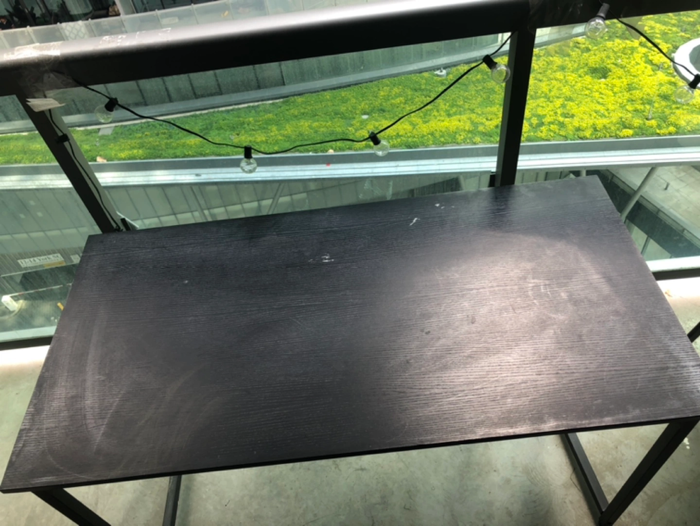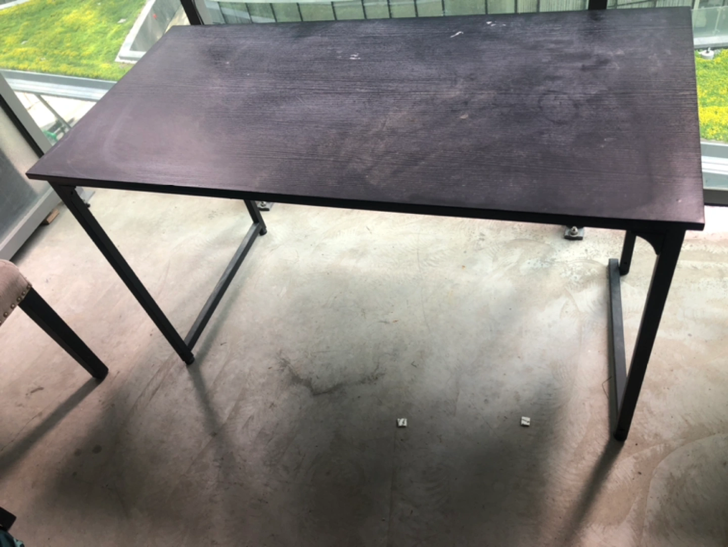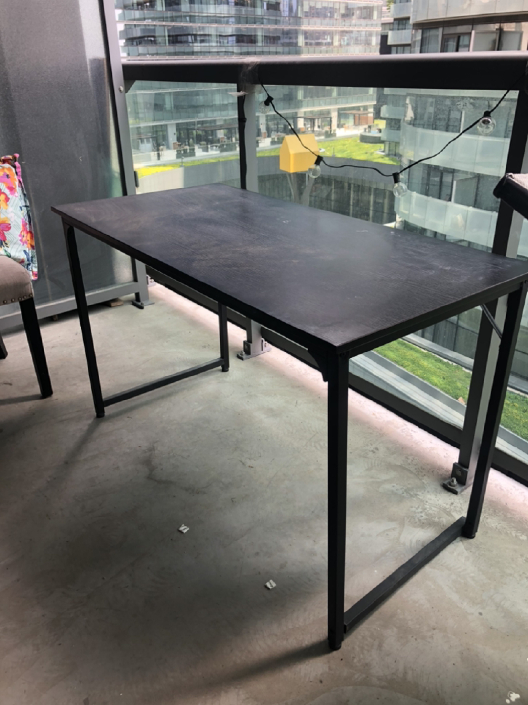 This is my friends table that is lying around. The table is 2 years old. It is in great condition. Except the rod between right side pair of the legs needs a screw. The table is still stable. It was bought from amazon for 80$.