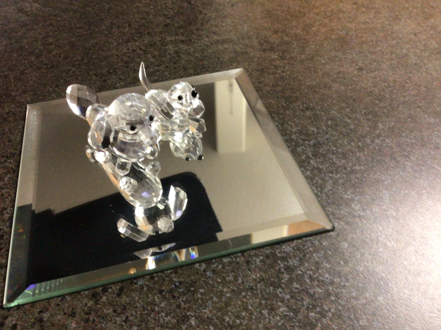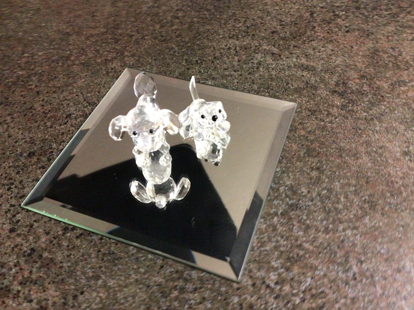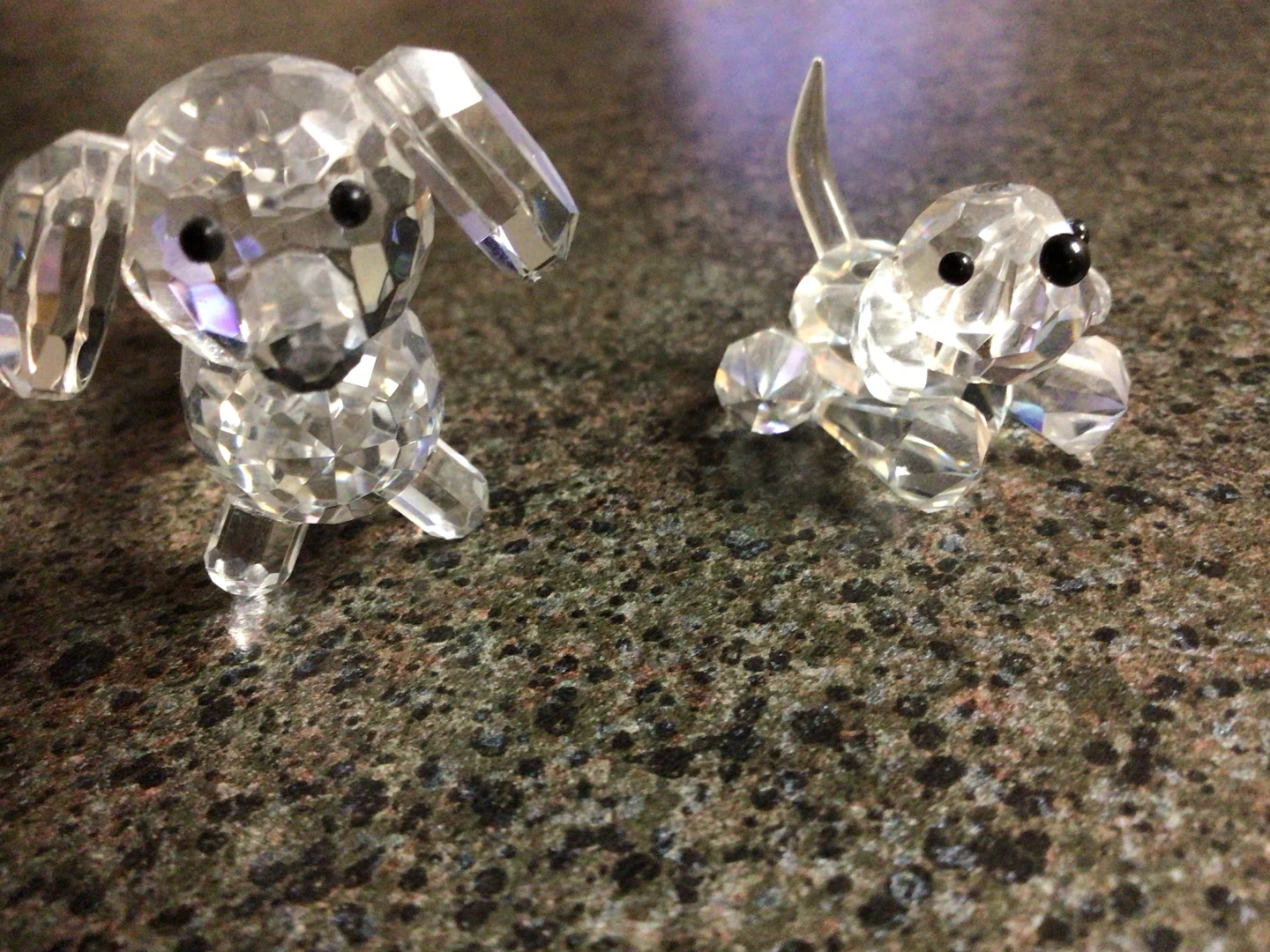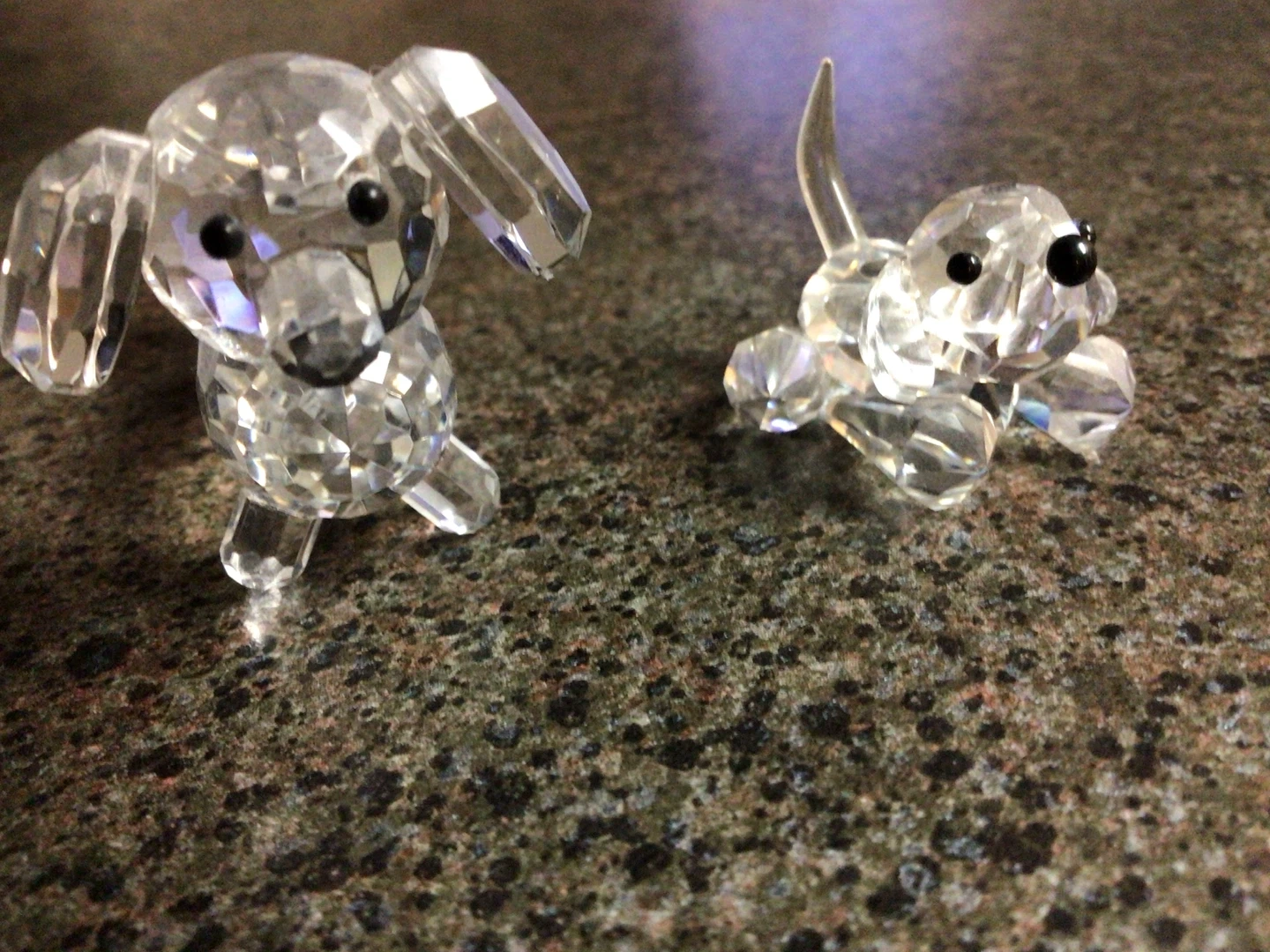 Two cute crystal dog figurines, perfect for adding a little sparkle to your space! They are in great condition and would make a lovely addition to any collection