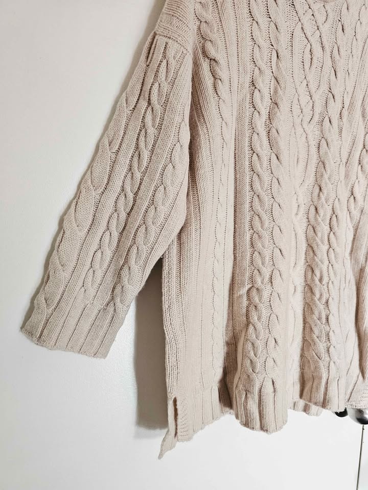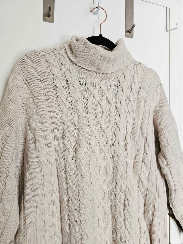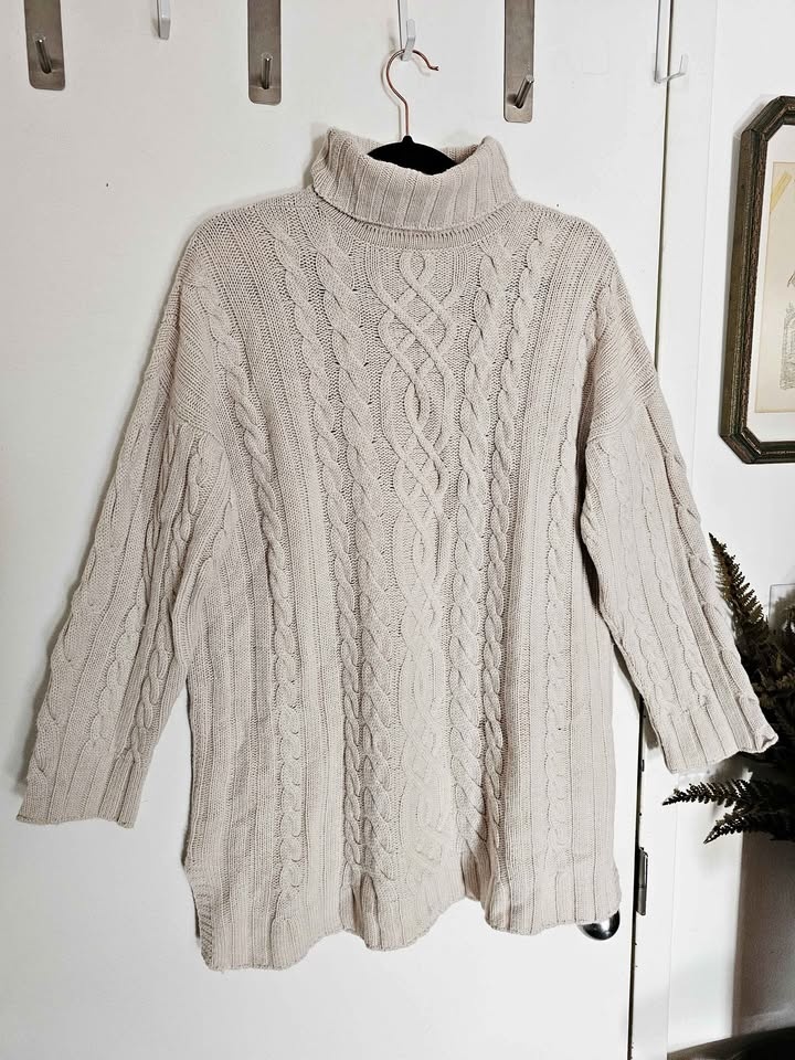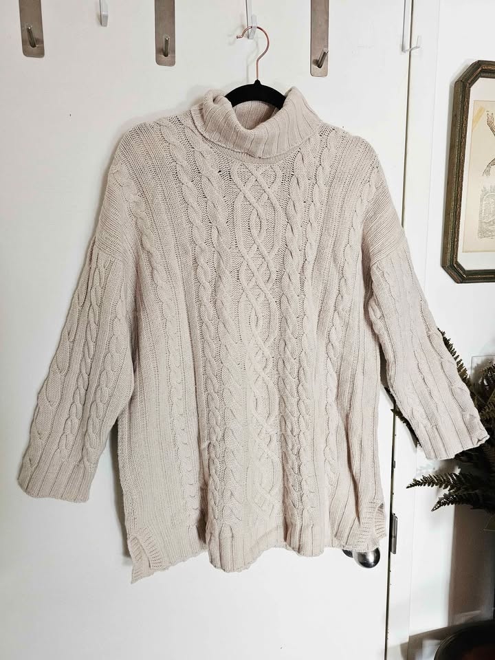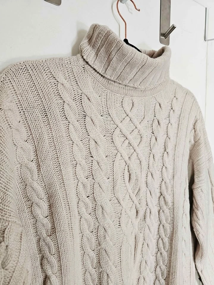Size L Cashmere Hawico Cable Knit Turtleneck Sweater