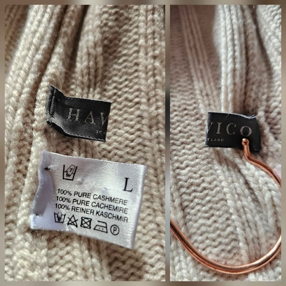 HAWICO is a historic Scottish mill (est. 1903) known for producing premium cashmere for high-end designers and boutiques. This piece dates to the 1990s and reflects traditional Scottish knitwear craftsmanship, unlike modern mall brand cashmere.