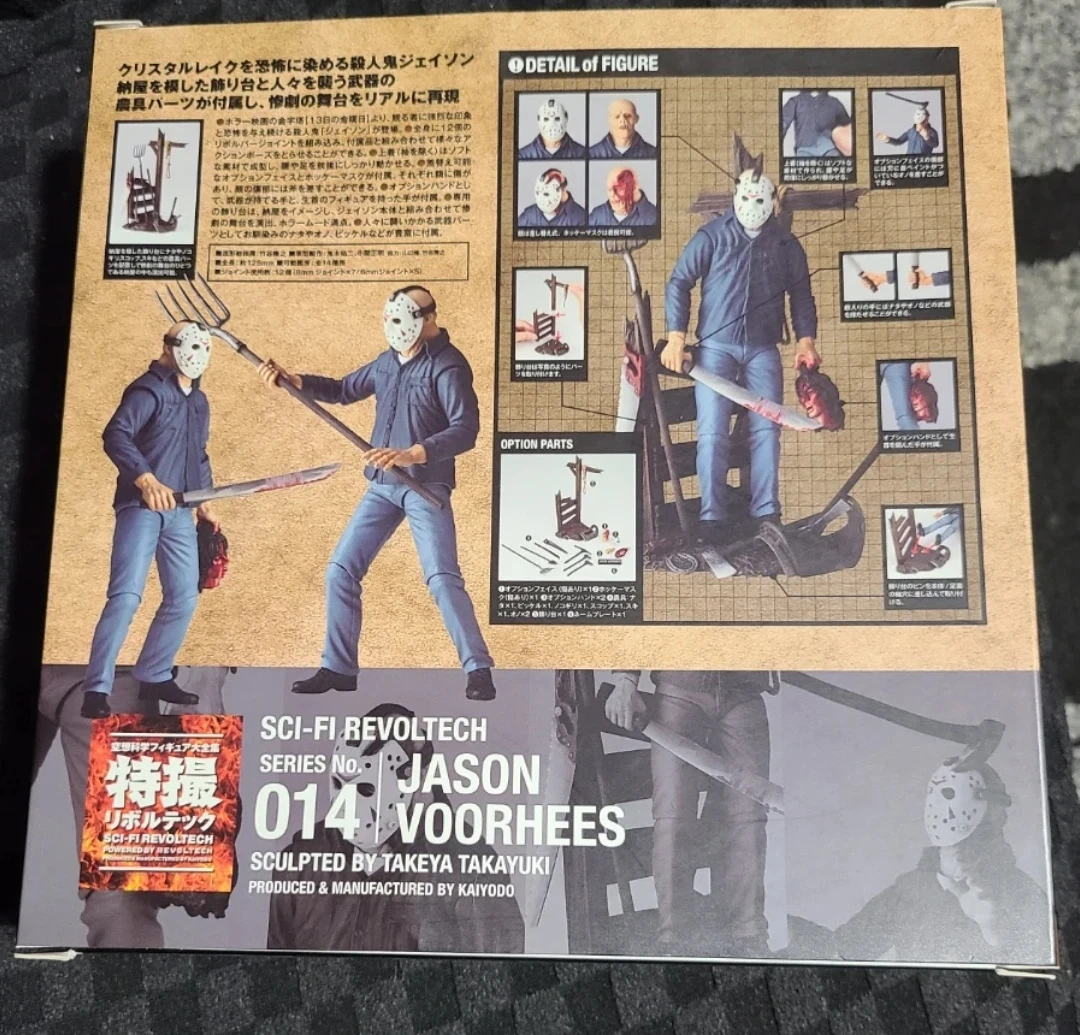 Selling a Kaiyodo Sci-Fi Revoltech Series No. 014 Jason Voorhees action figure! This figure is sculpted by Takeya Takayuki and produced & manufactured by Kaiyodo. It includes option parts and comes in its original box