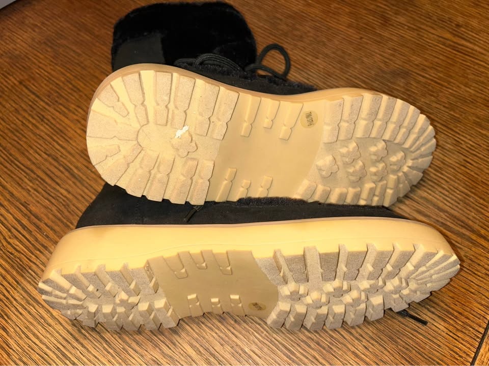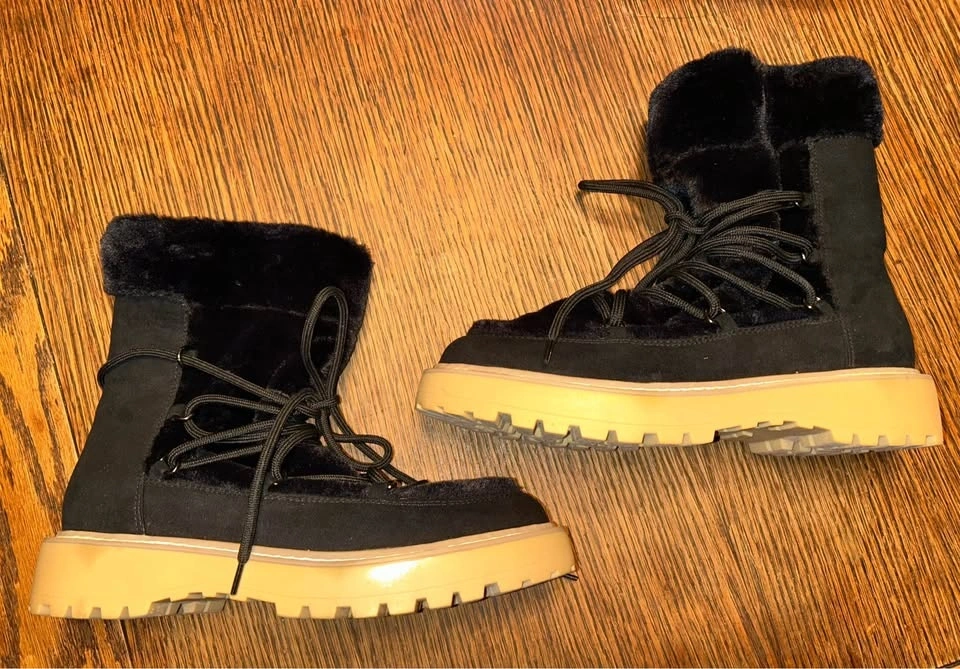 JLo Black Faux Suede & Fur Lug-Soled Ginna Boots - NEW - SZ 7