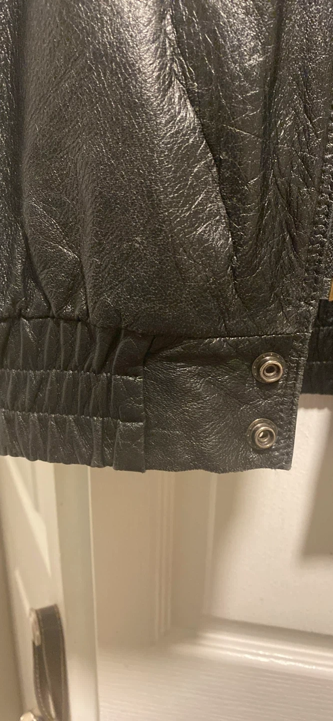 Size L. Selling a classic black leather jacket from Touche Leathers! It's in great shape and ready for a new owner.