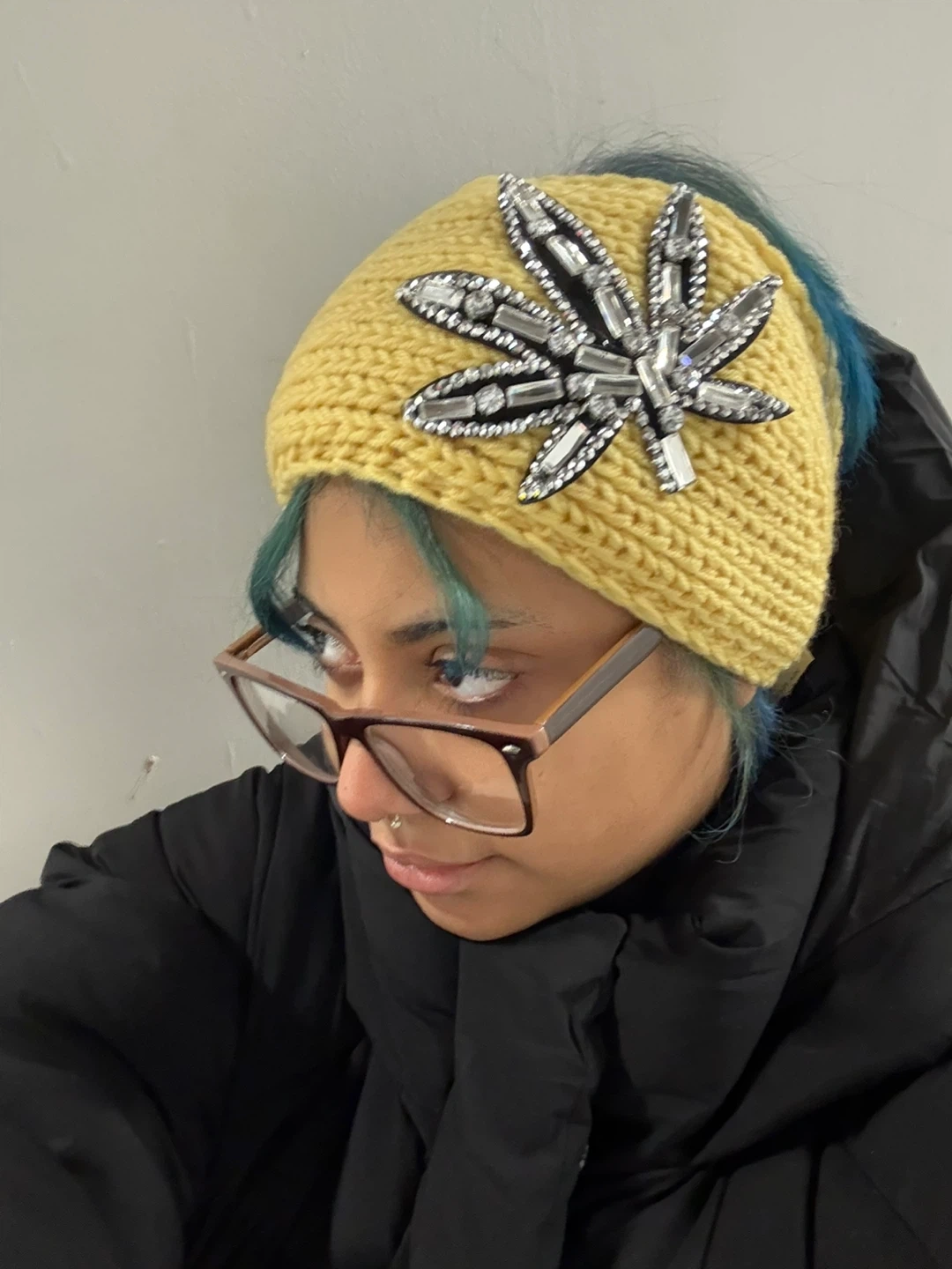 I'm selling a handmade knit beanie featuring a unique leaf design! It's brand new and comes in a beautiful yellow color. This beanie is perfect for keeping you warm and stylish during the colder months. It's a great accessory to add to your wardrobe!