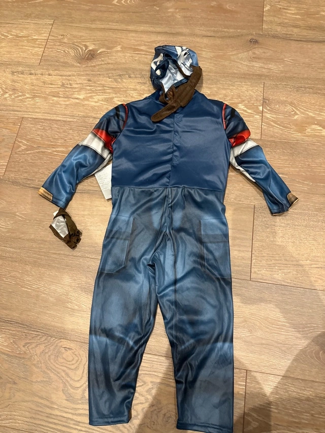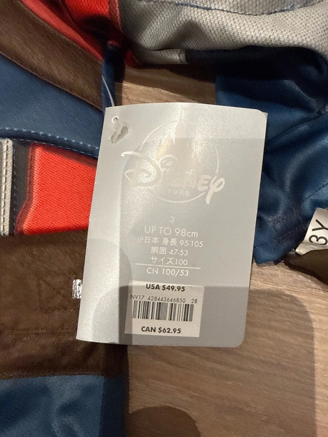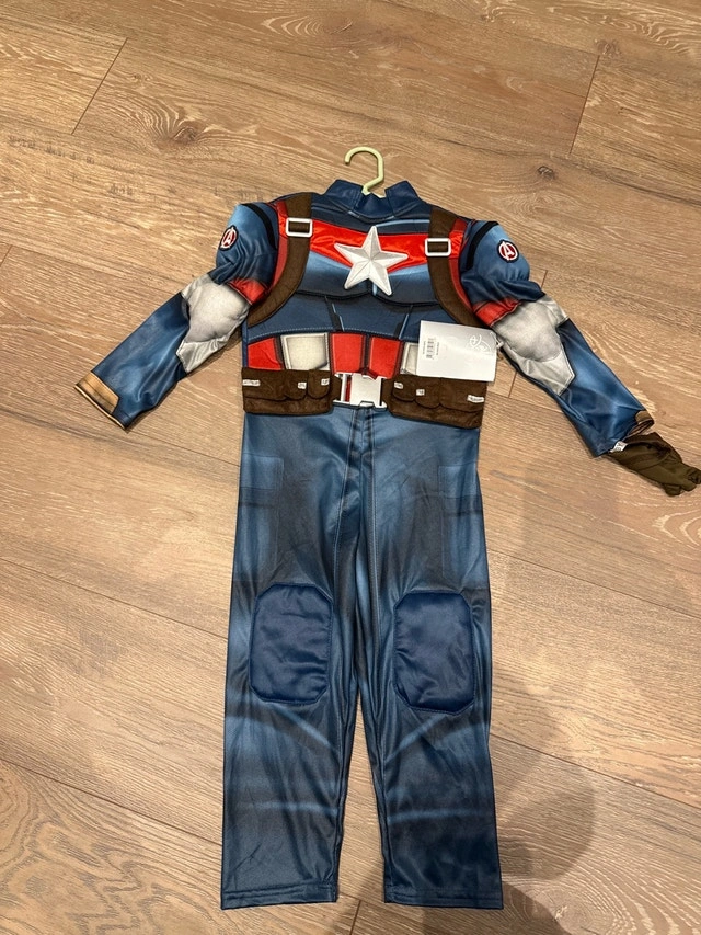 Get ready for action with this Disney Store Captain America costume, sized for a child aged 3! It is in new condition with the original tag still attached, making it perfect for your little superhero's imaginative play. * Size: 3 (Up to 98cm) * Brand: Disney Store * Condition: New with tags This suit is just waiting for a new adventure. If the ad is up, it's available!
