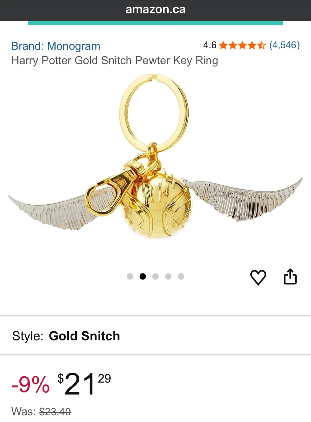 Add some magic to your keys or bag with this brand new Harry Potter Gold Snitch Pewter Keyring. It comes in its original packaging. Great as gifts on any occasion.