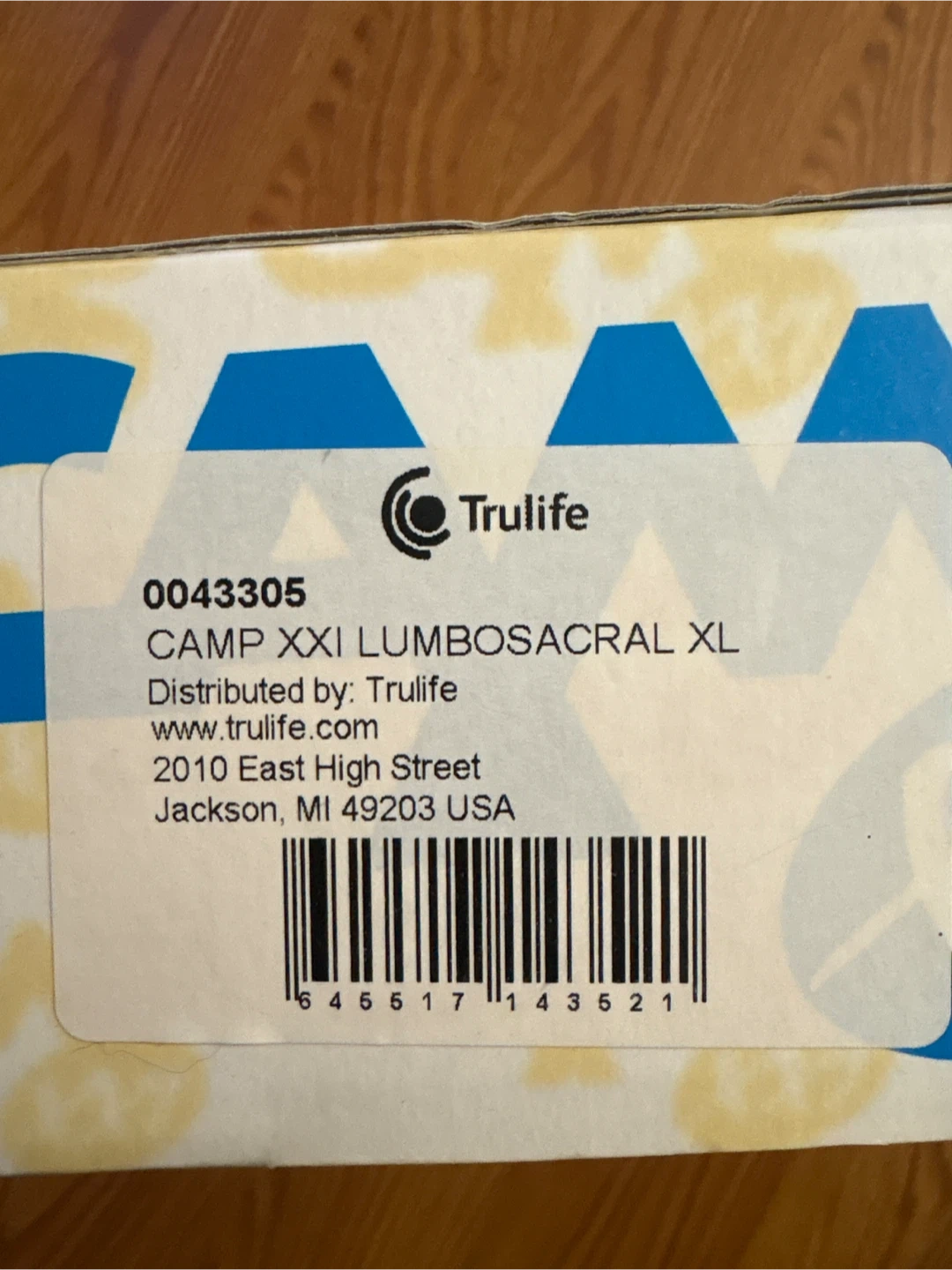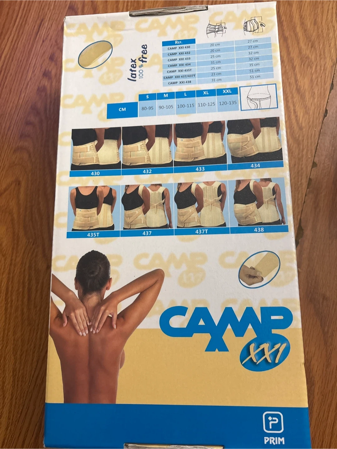 Selling a CAMP Lumbosacral back support. It's size XL, as indicated on the box. Provides support for the lower back. Perfect for anyone needing extra support!