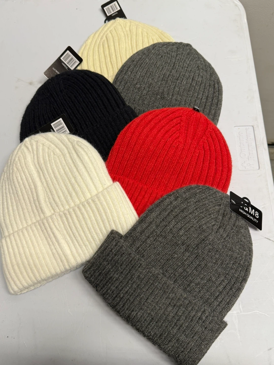 I have several M8 brand beanies available in different colors! You can choose from red, white, black, and gray. They are high quality and ready to keep you warm.