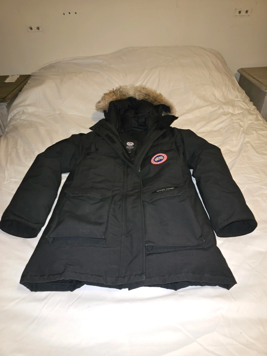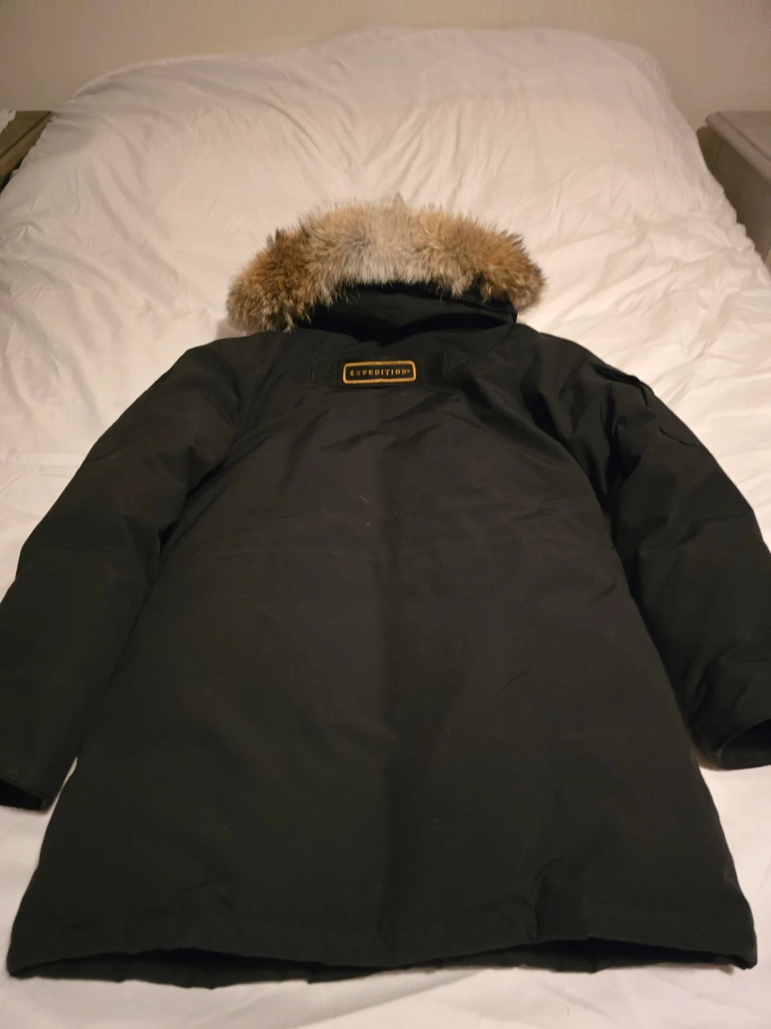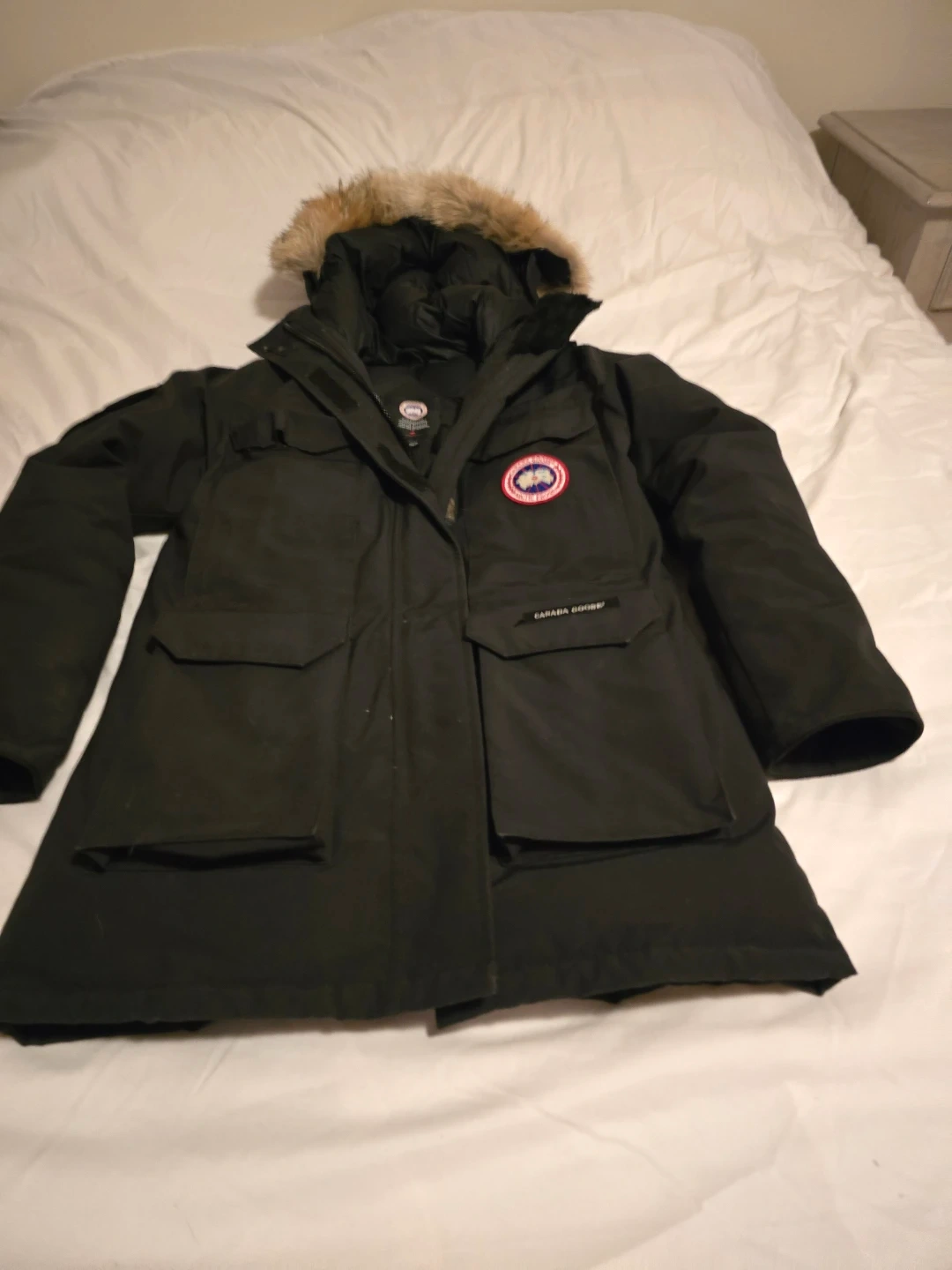 Selling a Canada Goose Expedition Parka in black. This parka is known for its exceptional warmth and durability, perfect for cold weather. It's in great condition and ready to keep you cozy!