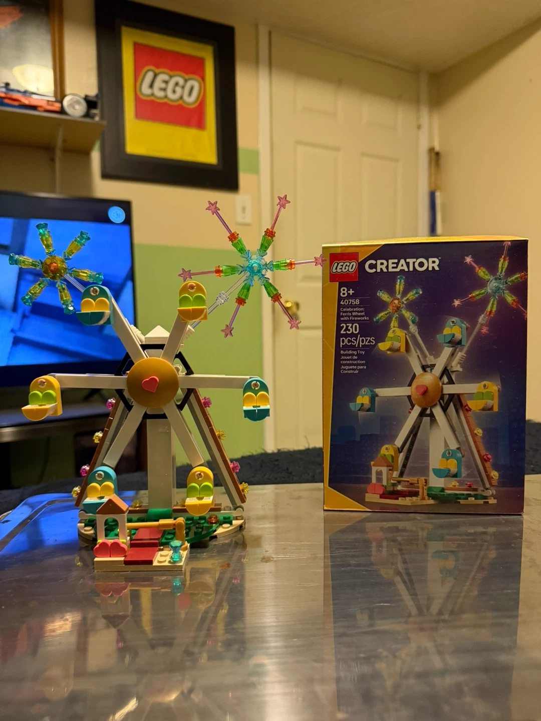 Selling a LEGO Creator Celebration Ferris Wheel with Fireworks (40758)! This set is suitable for ages 8+ and contains 230 pieces. The box is included, along with all the pieces and instructions. #cleanout
