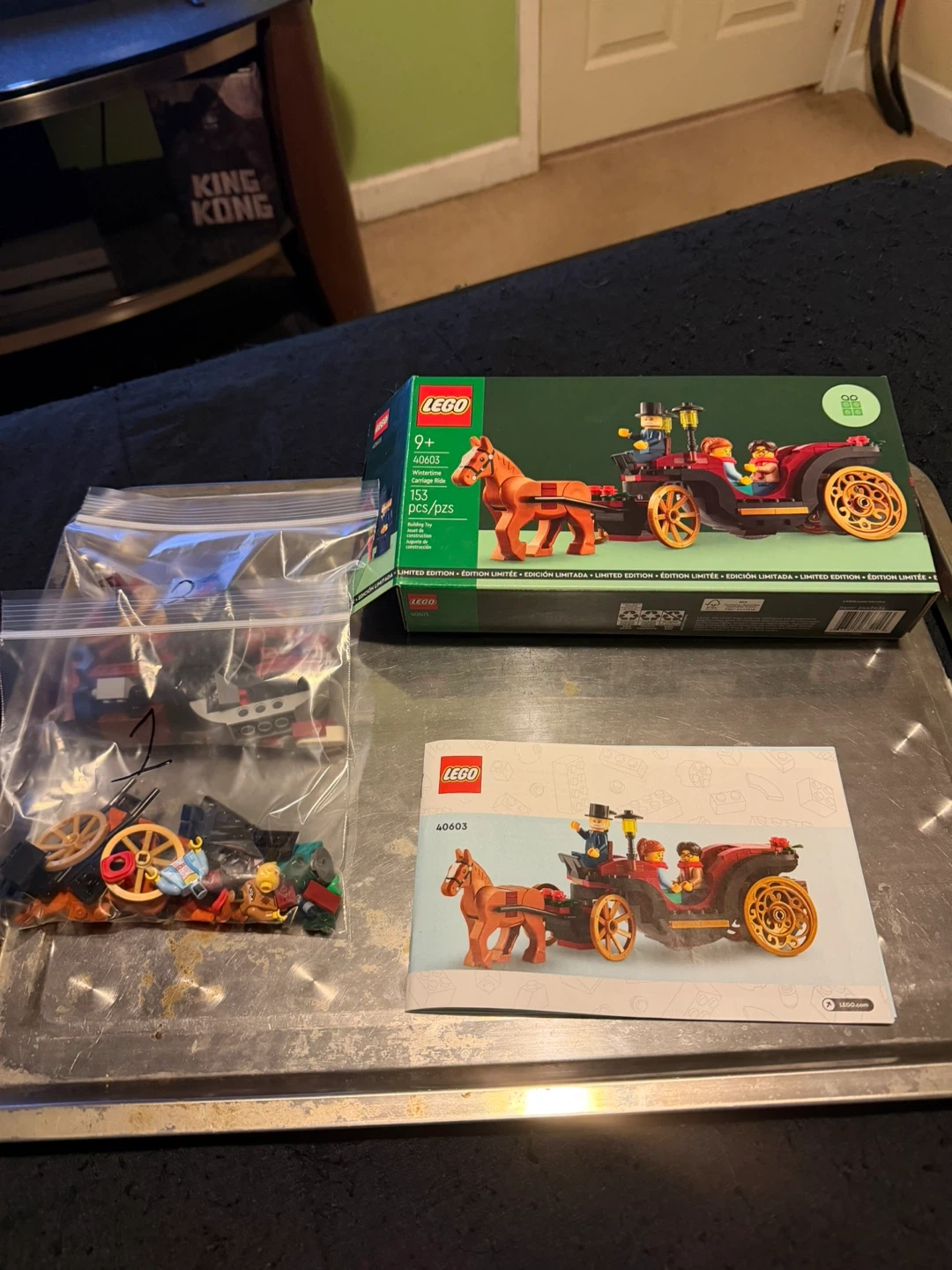 Selling a LEGO set, the Wintertime Carriage Ride (set number 40603)! This set is perfect for ages 9+ and contains 153 pieces. The box is included, and all the pieces have been re-bagged with the instructions & the box. #cleanout